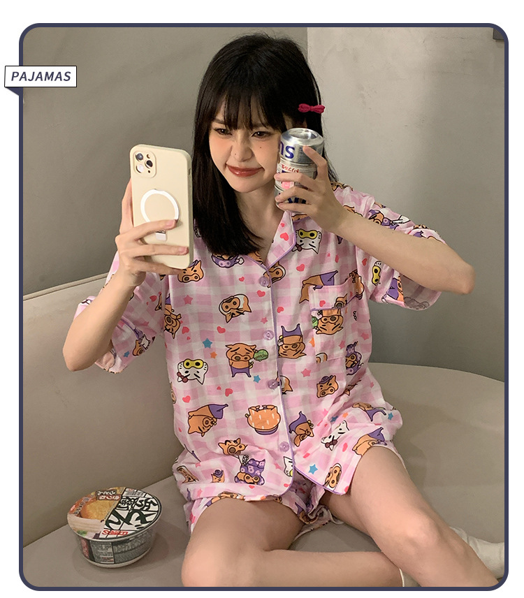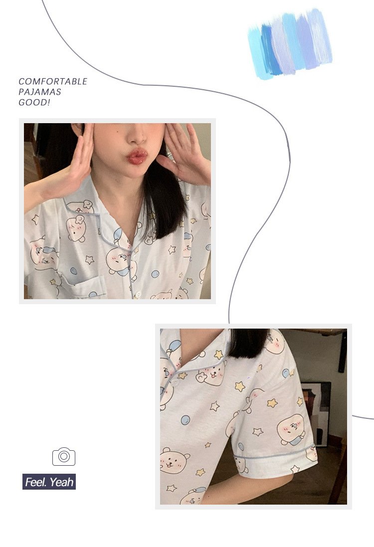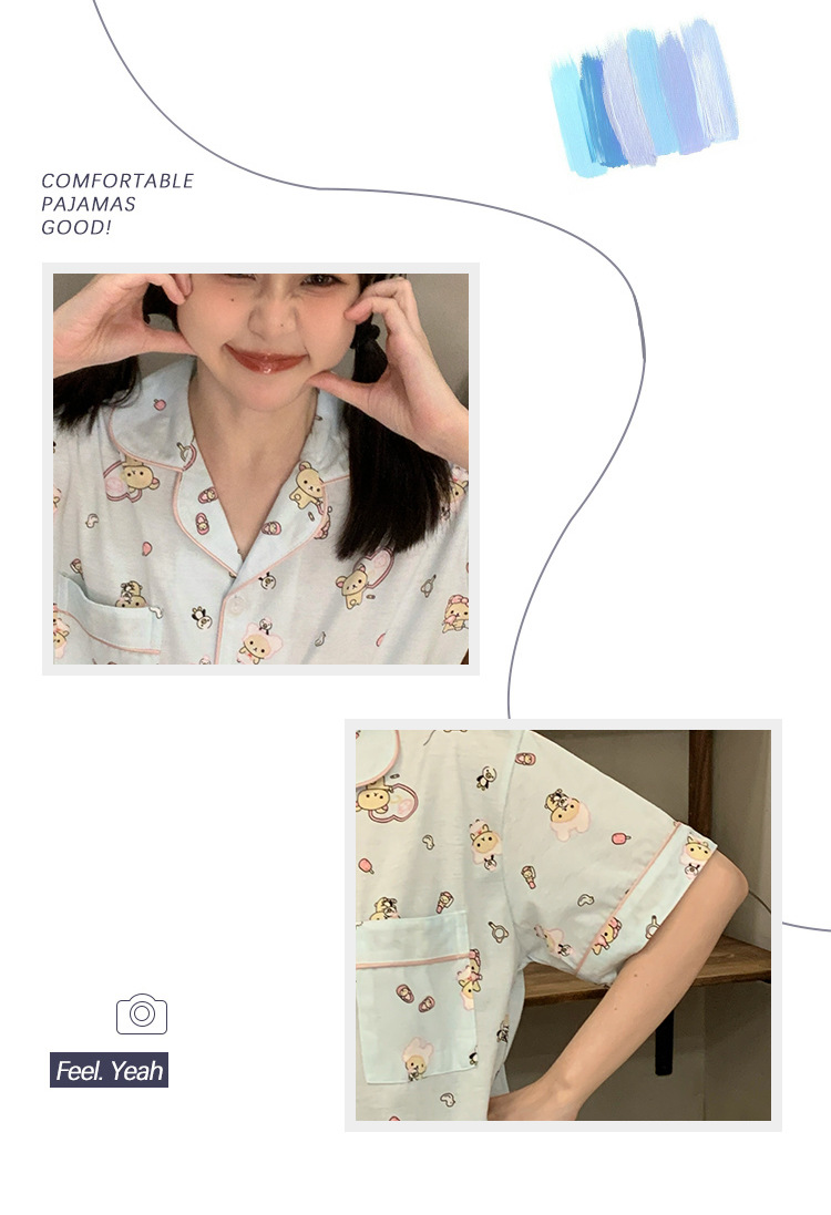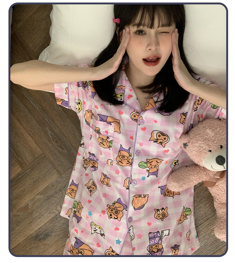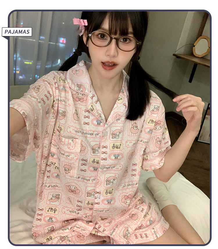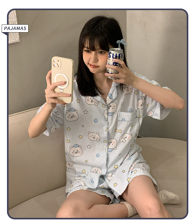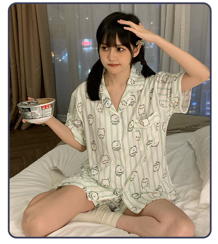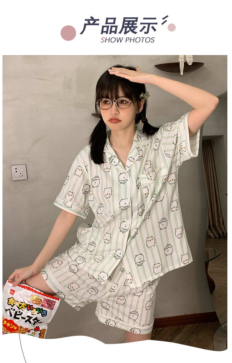 日系insパジャマ女性夏純綿半袖半ズボンアニメかわいい少女ホームウェア2点セット