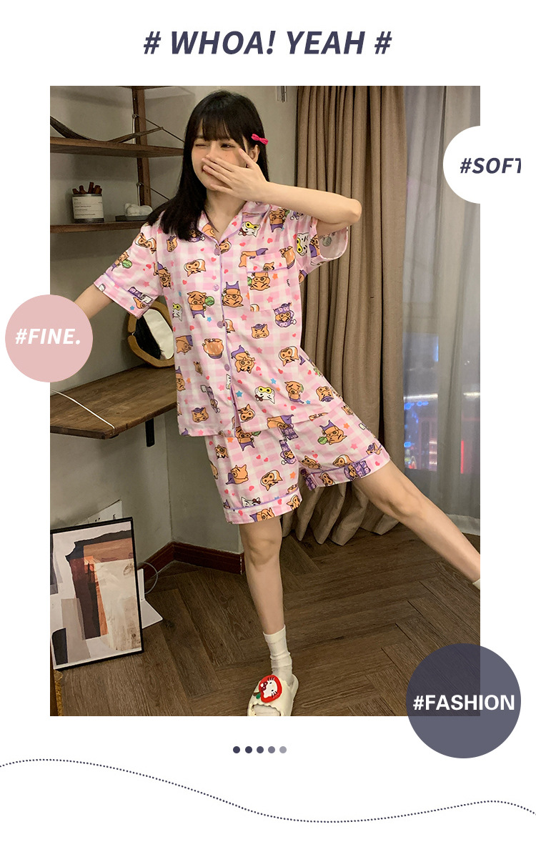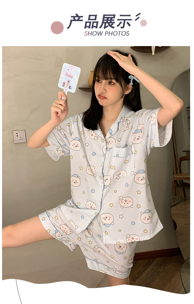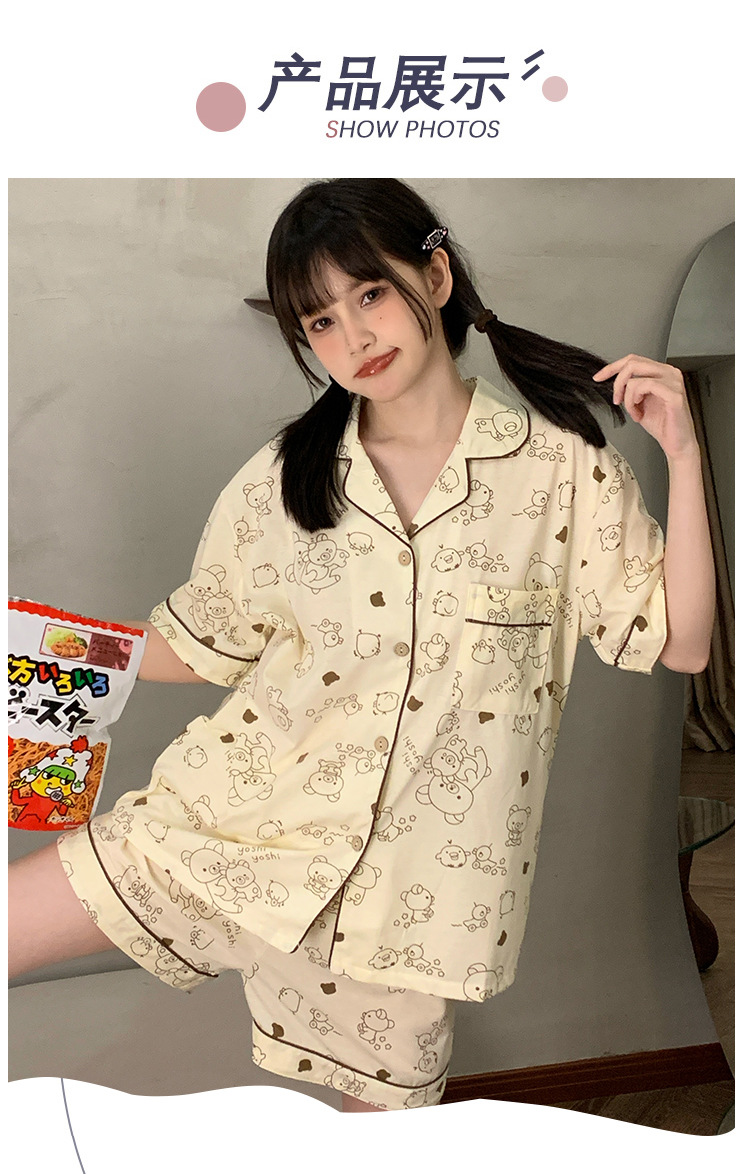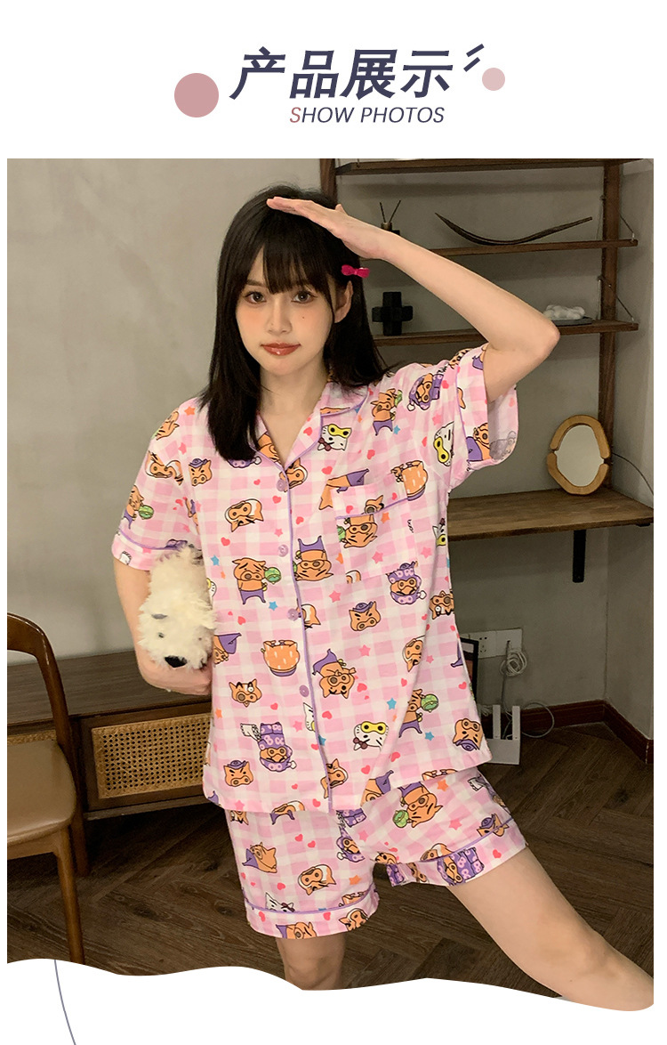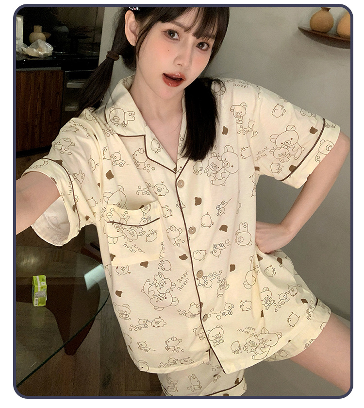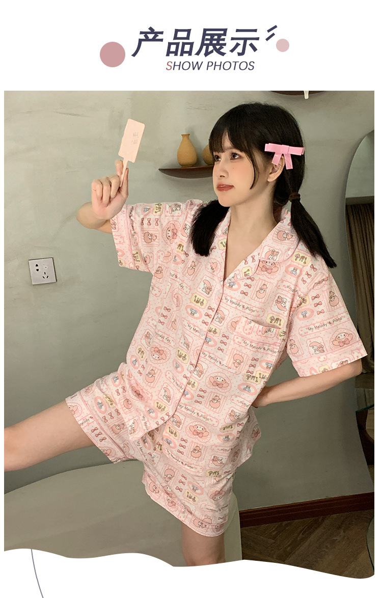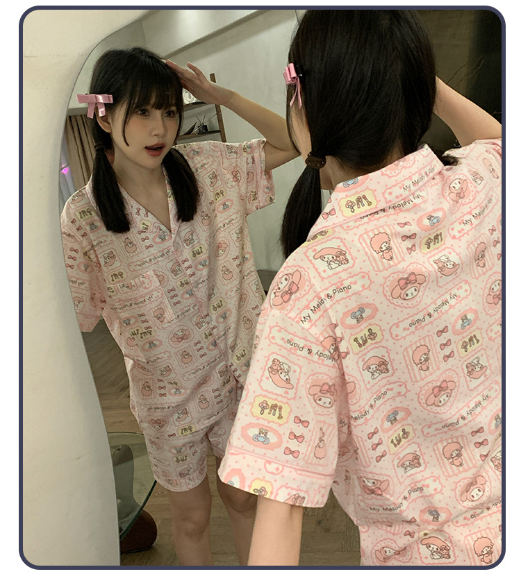 日系insパジャマ女性夏純綿半袖半ズボンアニメかわいい少女ホームウェア2点セット