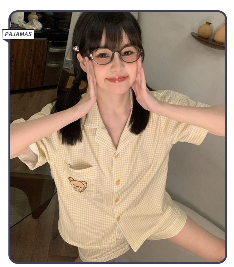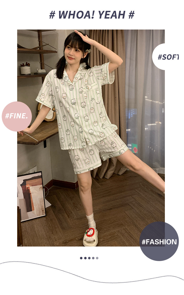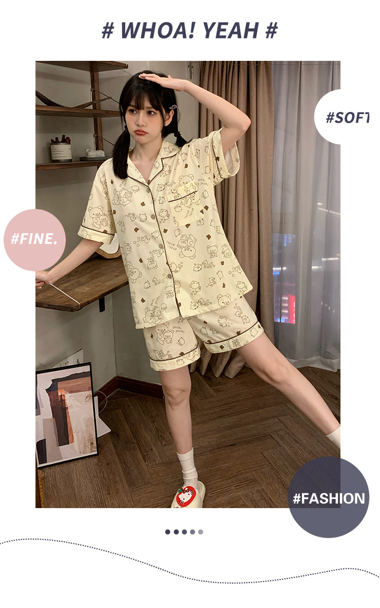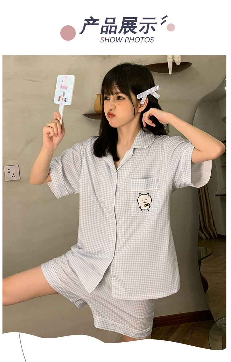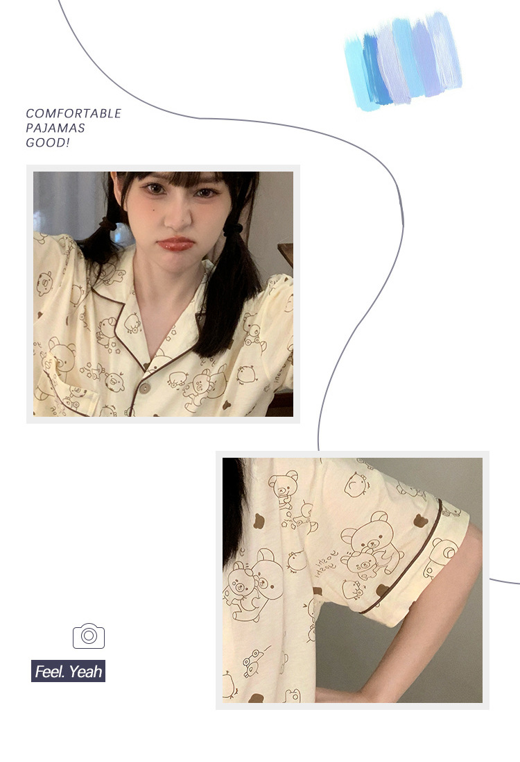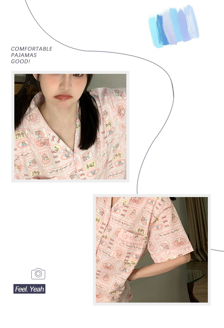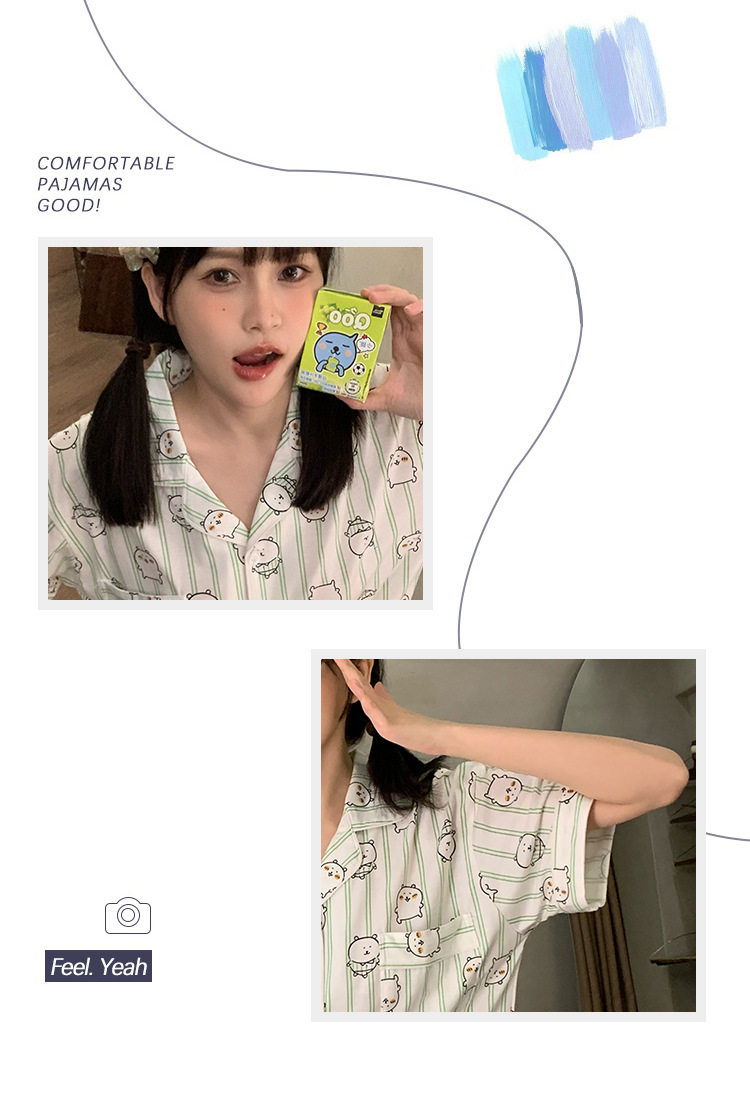 日系insパジャマ女性夏純綿半袖半ズボンアニメかわいい少女ホームウェア2点セット