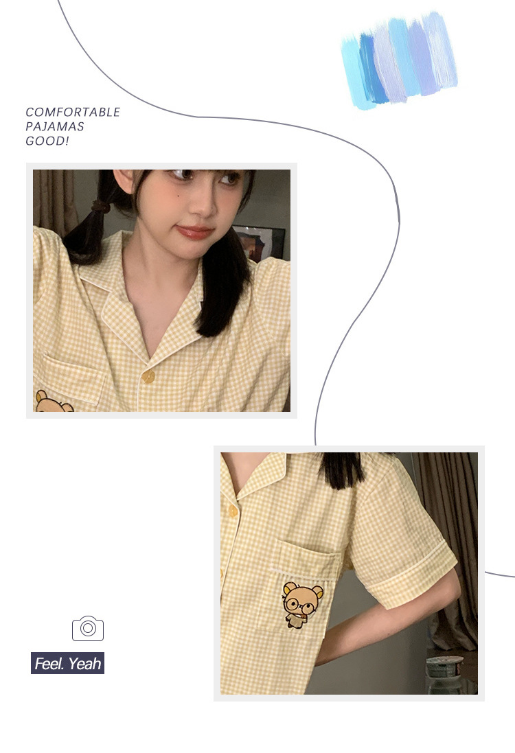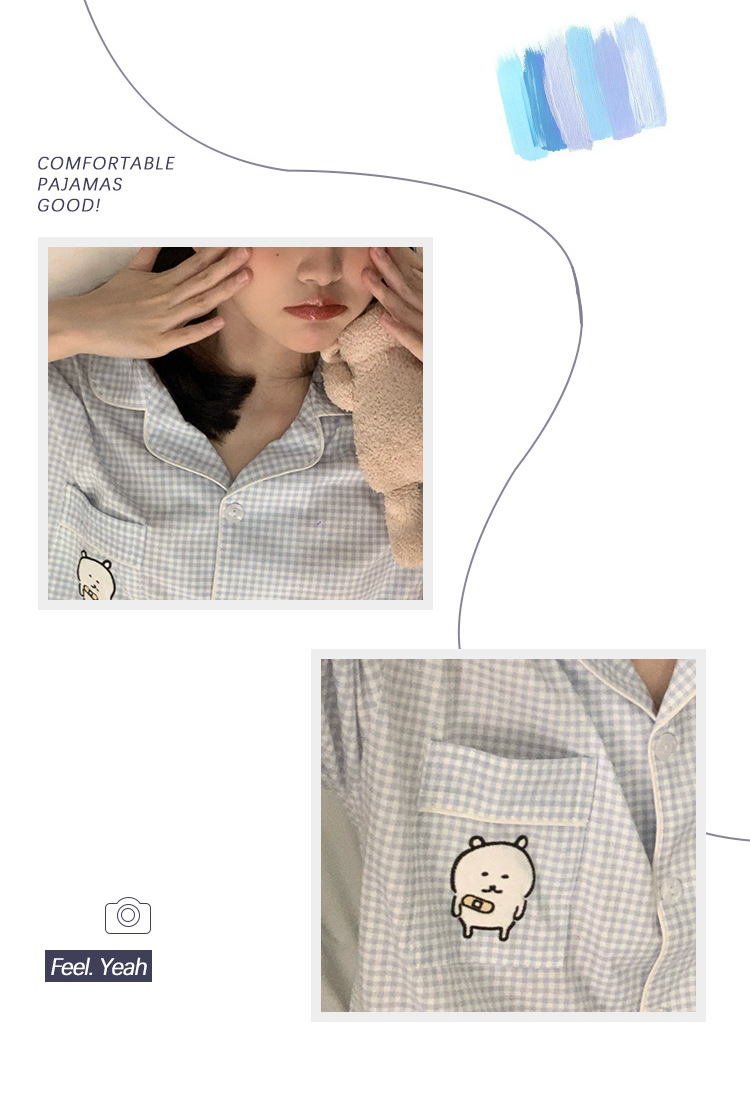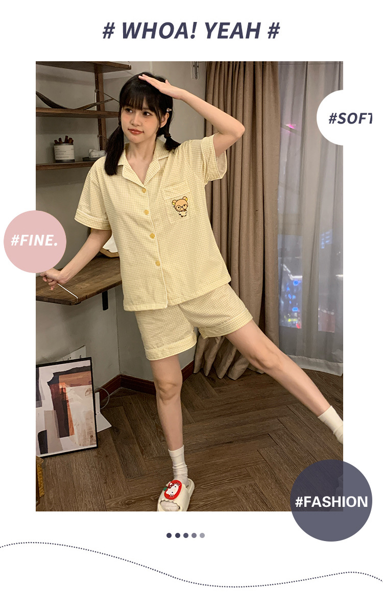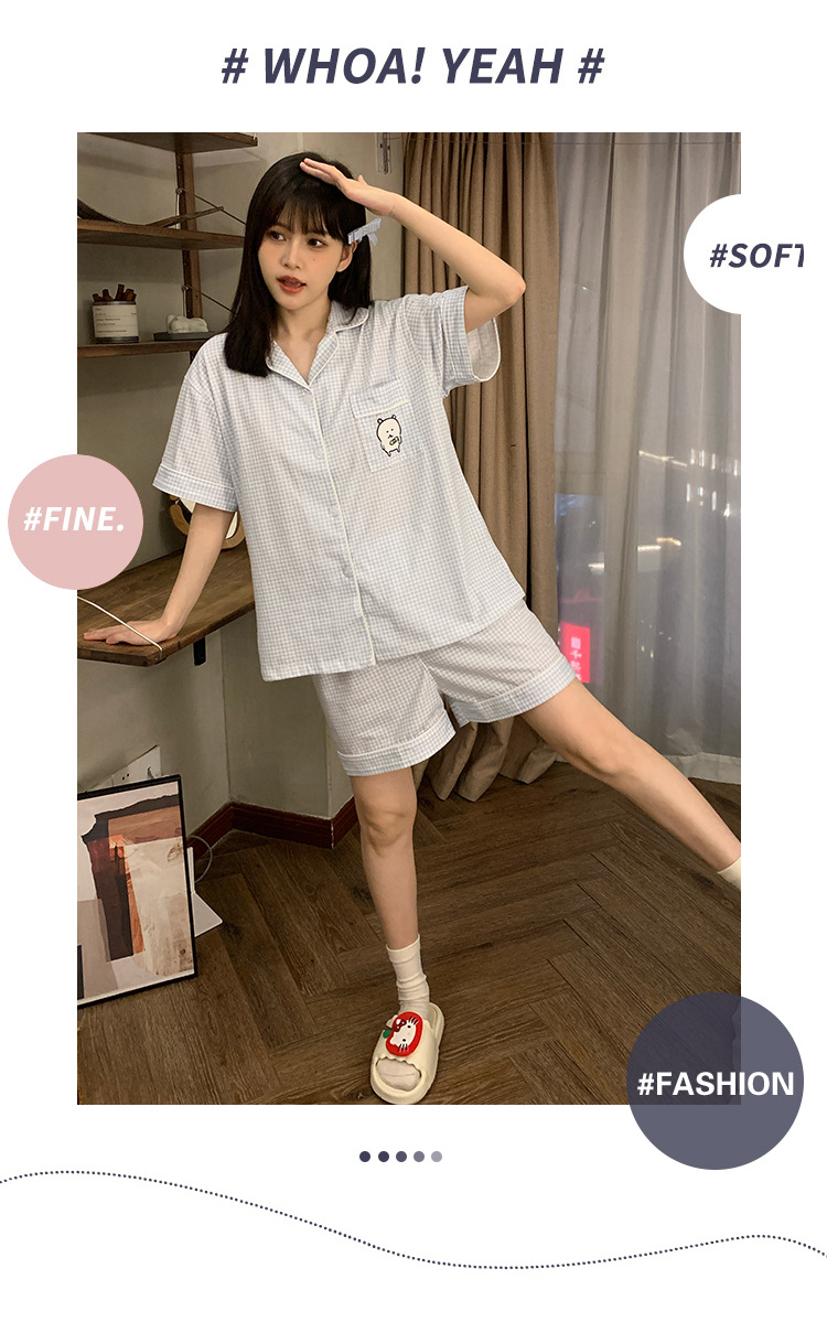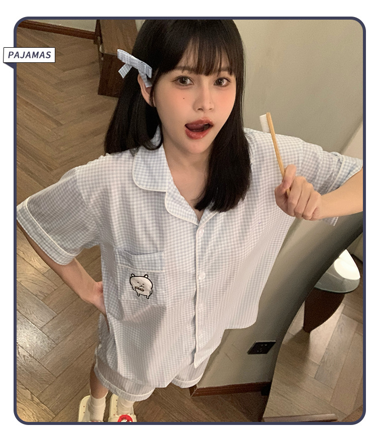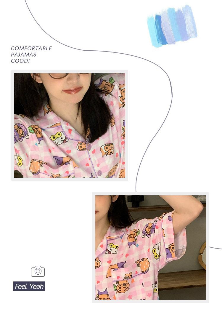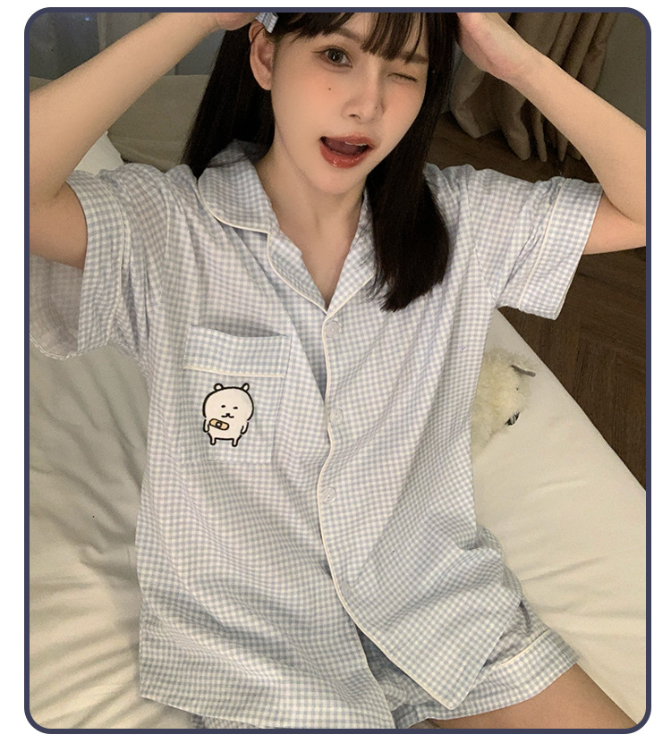 日系insパジャマ女性夏純綿半袖半ズボンアニメかわいい少女ホームウェア2点セット