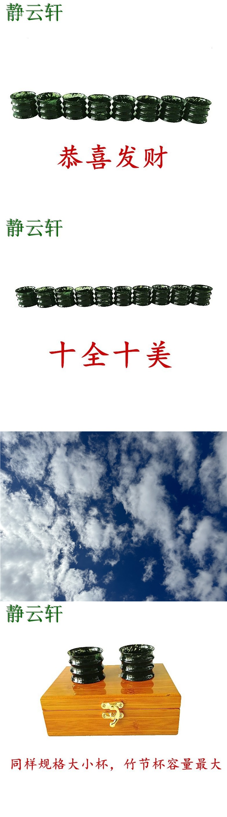 天然チベット玉薬王石工夫茶杯墨緑玉活磁石酒具茶杯透光玉竹節杯