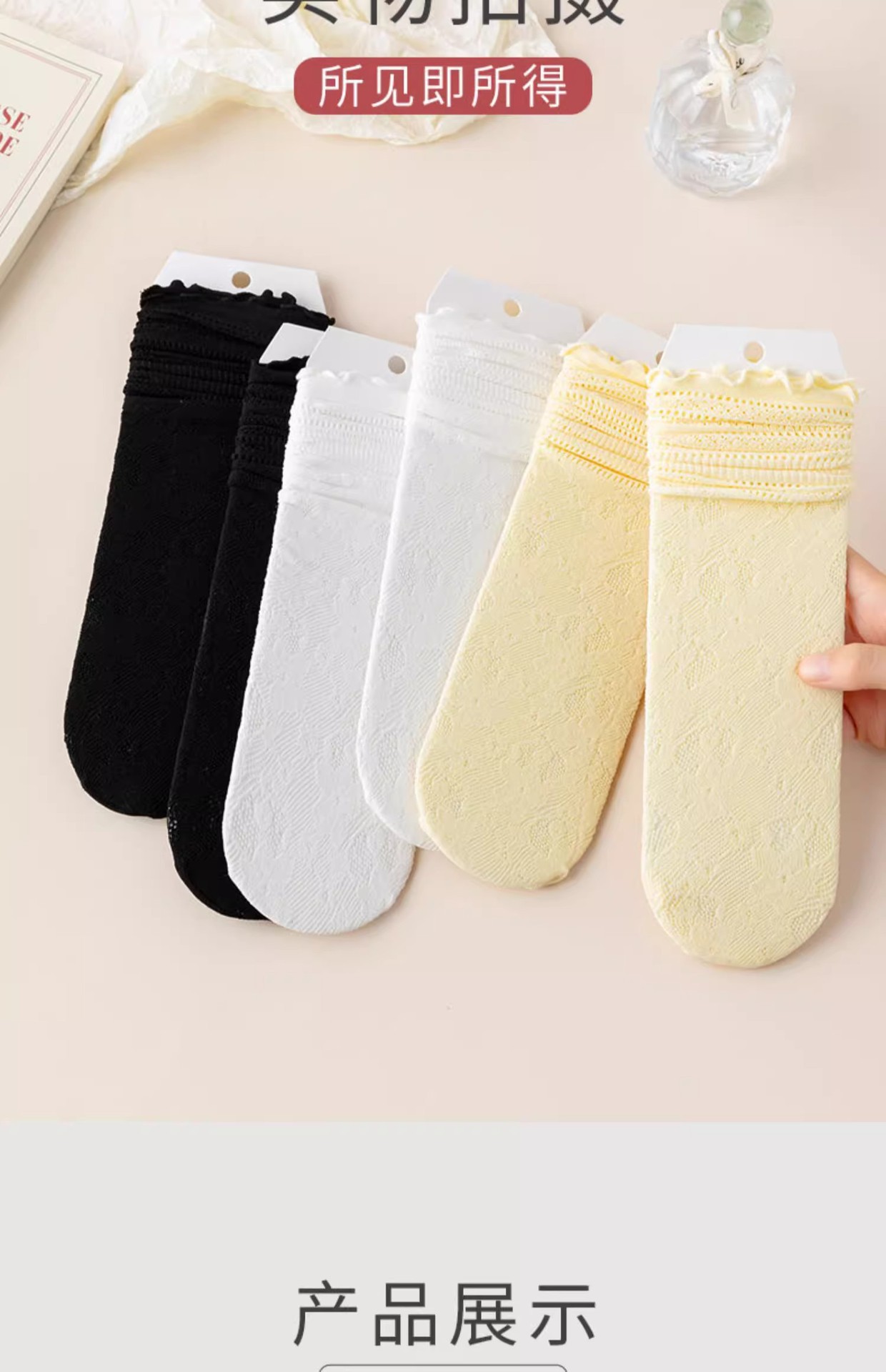 レースの花の靴下の子供の夏の氷のストッキングの夏の薄いタイプのソックスの浅い口の靴下の日本の水晶のガラスのストッキング