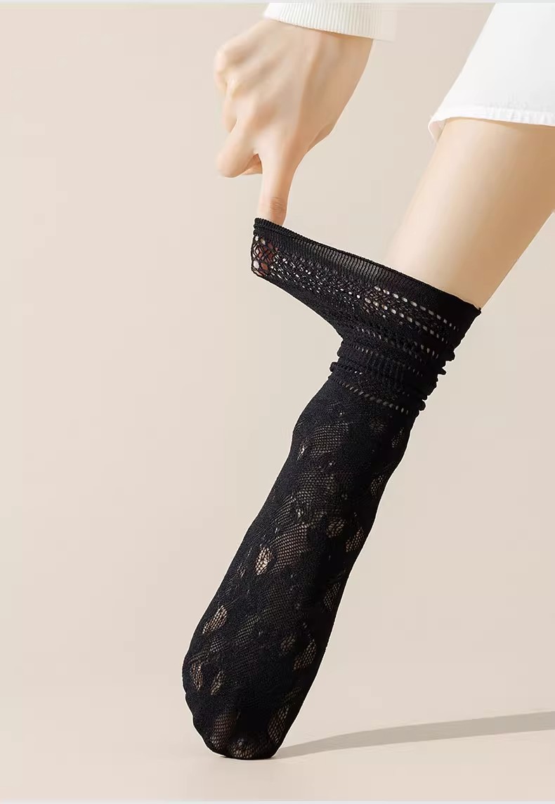 夏のレースのストッキングのレースの目の氷の靴下の薄いタイプの中筒の靴下の通気性の靴下の子供jkの涼しさのレースのストッキング