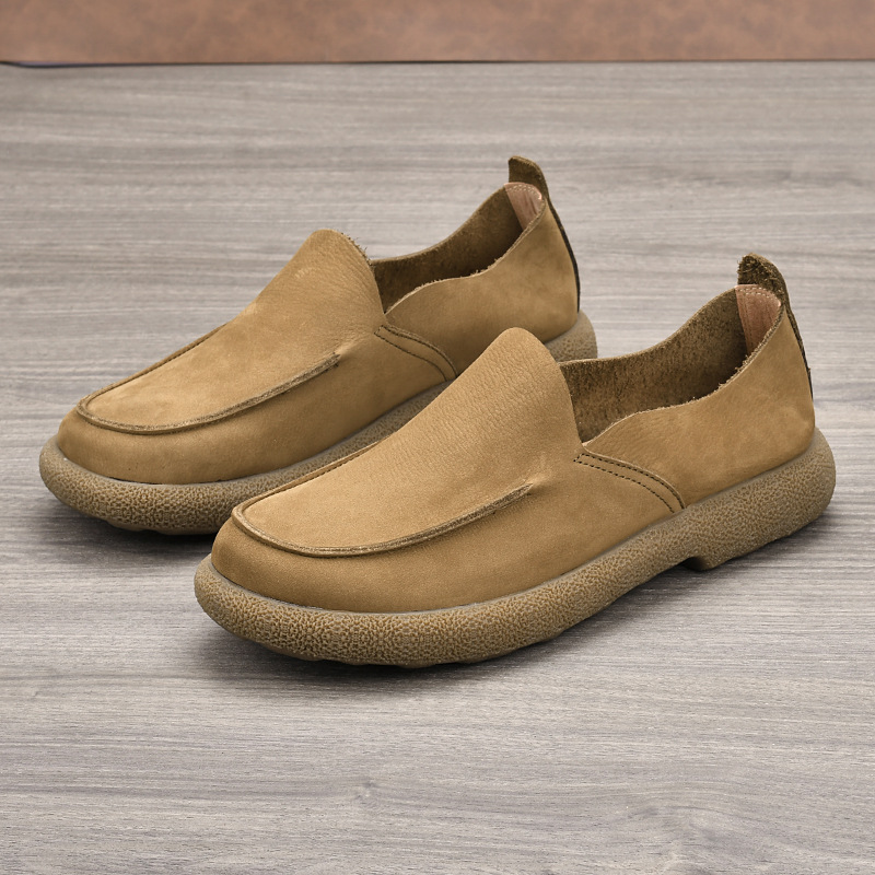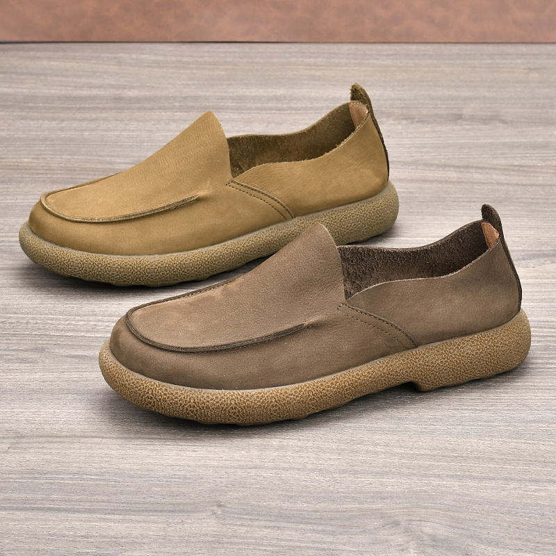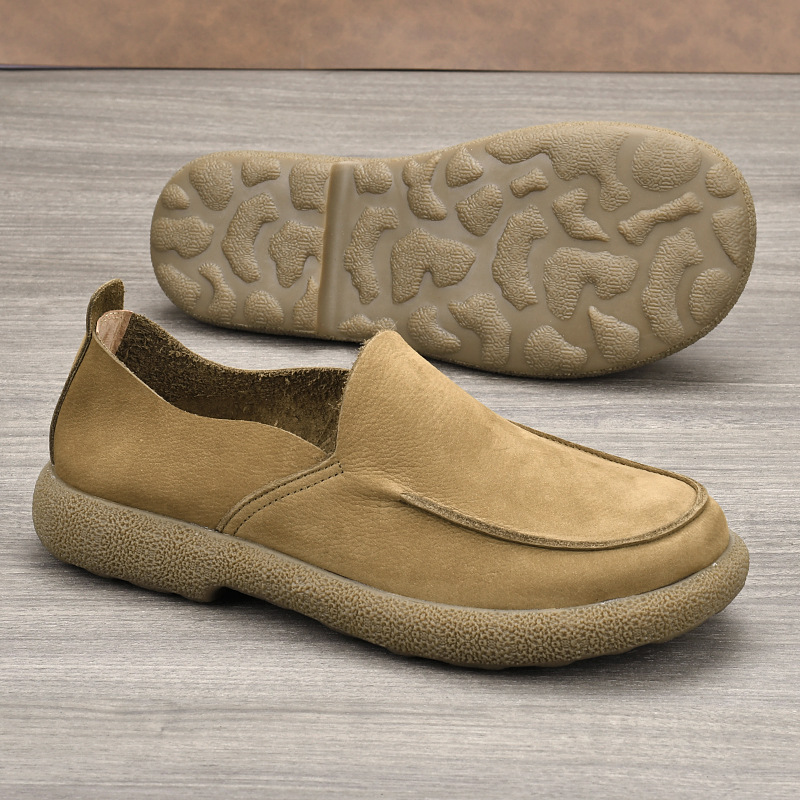 本革の男性靴2025春の新型レトロな本革の快適で柔らかい底が低いので、カジュアルな靴の男性メーカーに直接販売してもらいます。