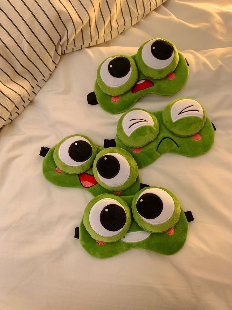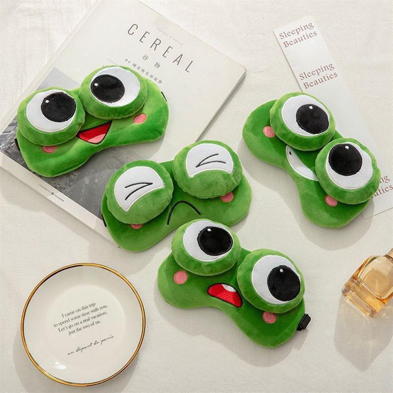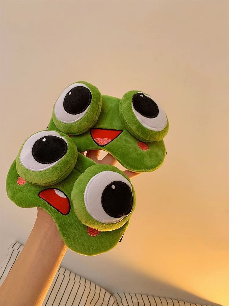 可爱青蛙毛绒现货眼罩生动大眼俏皮表情柔软亲肤面料多款表情可选