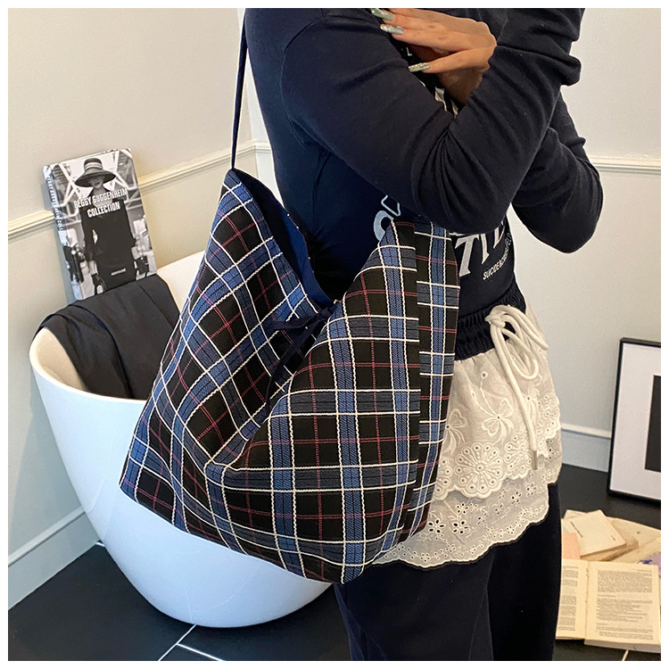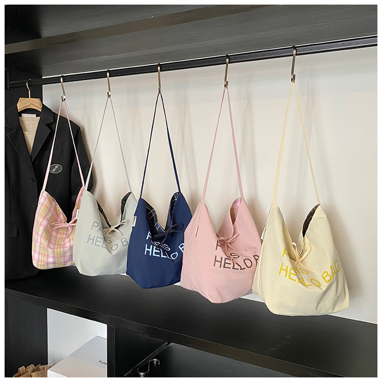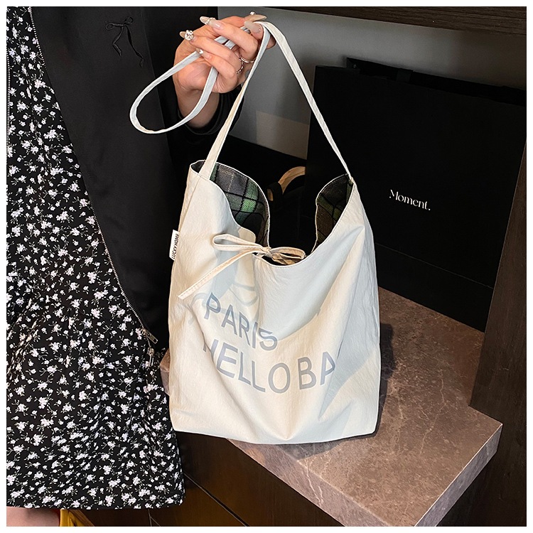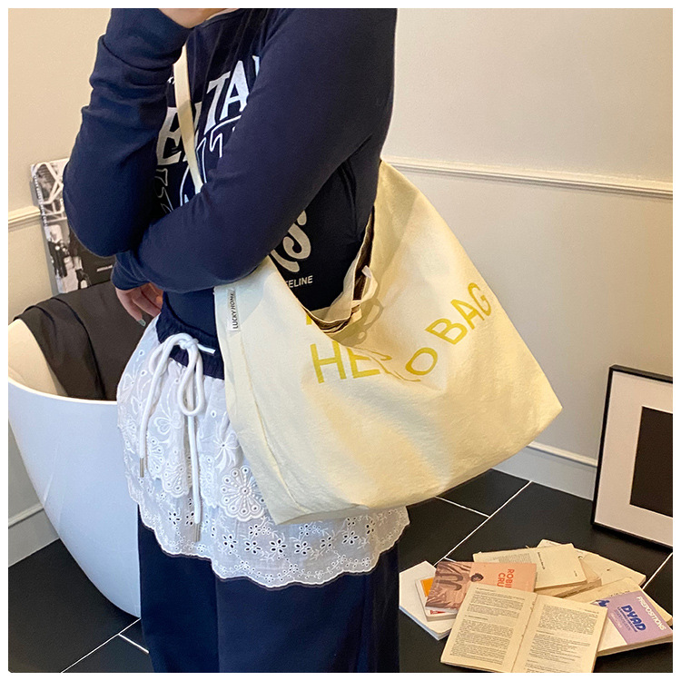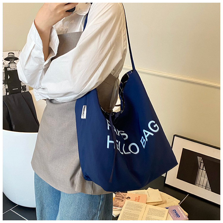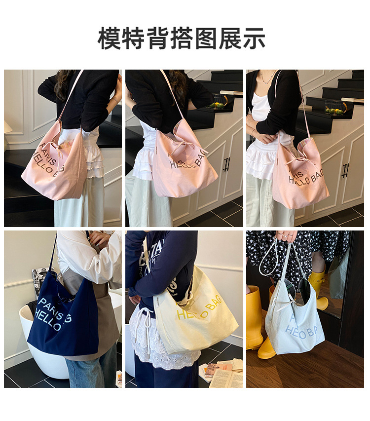 韓国版の大容量ショルダーバッグインレタートートバッグレディーストレンディなキャンバスバッグ多用途通勤ショルダーバケットバッグ