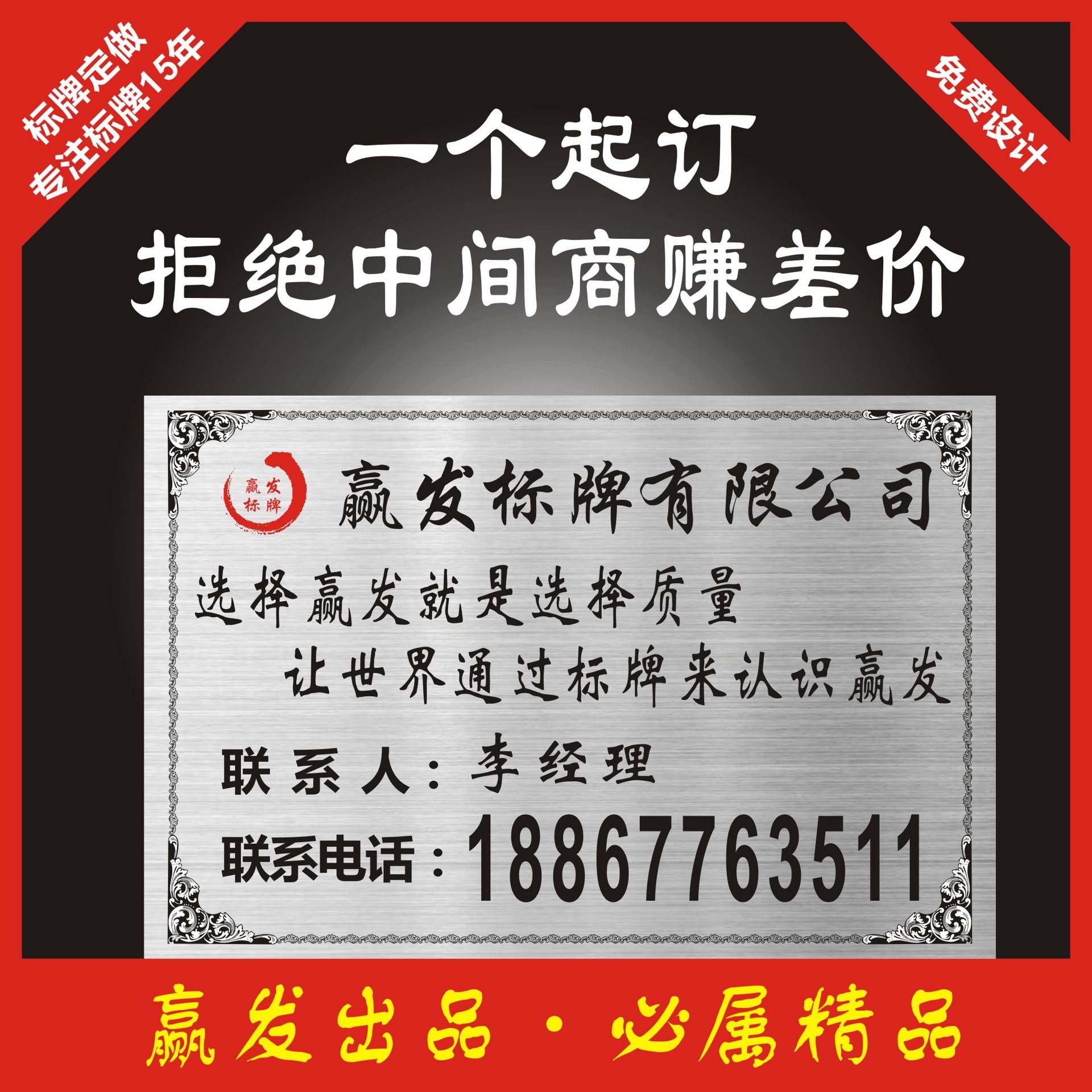 メーカーはステンレス製の糸を引く金属標識をカスタマイズして、銘板をエッチングします。