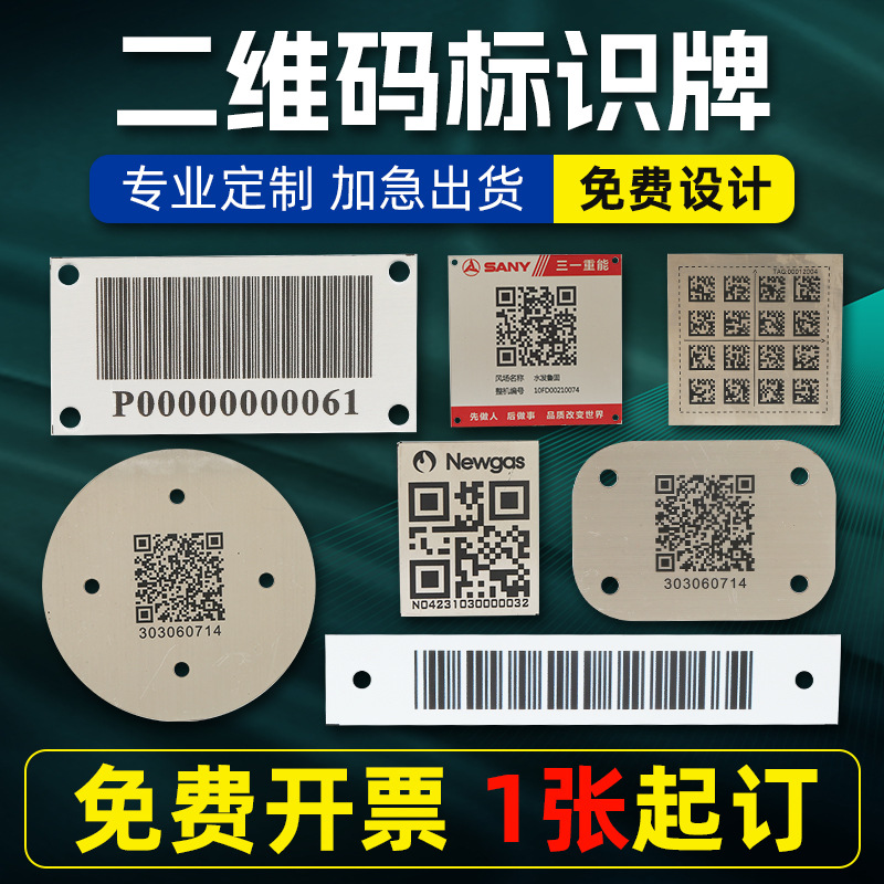 カスタマイズされた金属 QR コード サイン、耐摩耗性レーザー彫刻バーコード銘板、ステンレス鋼腐食銘板、アルミニウム銘板