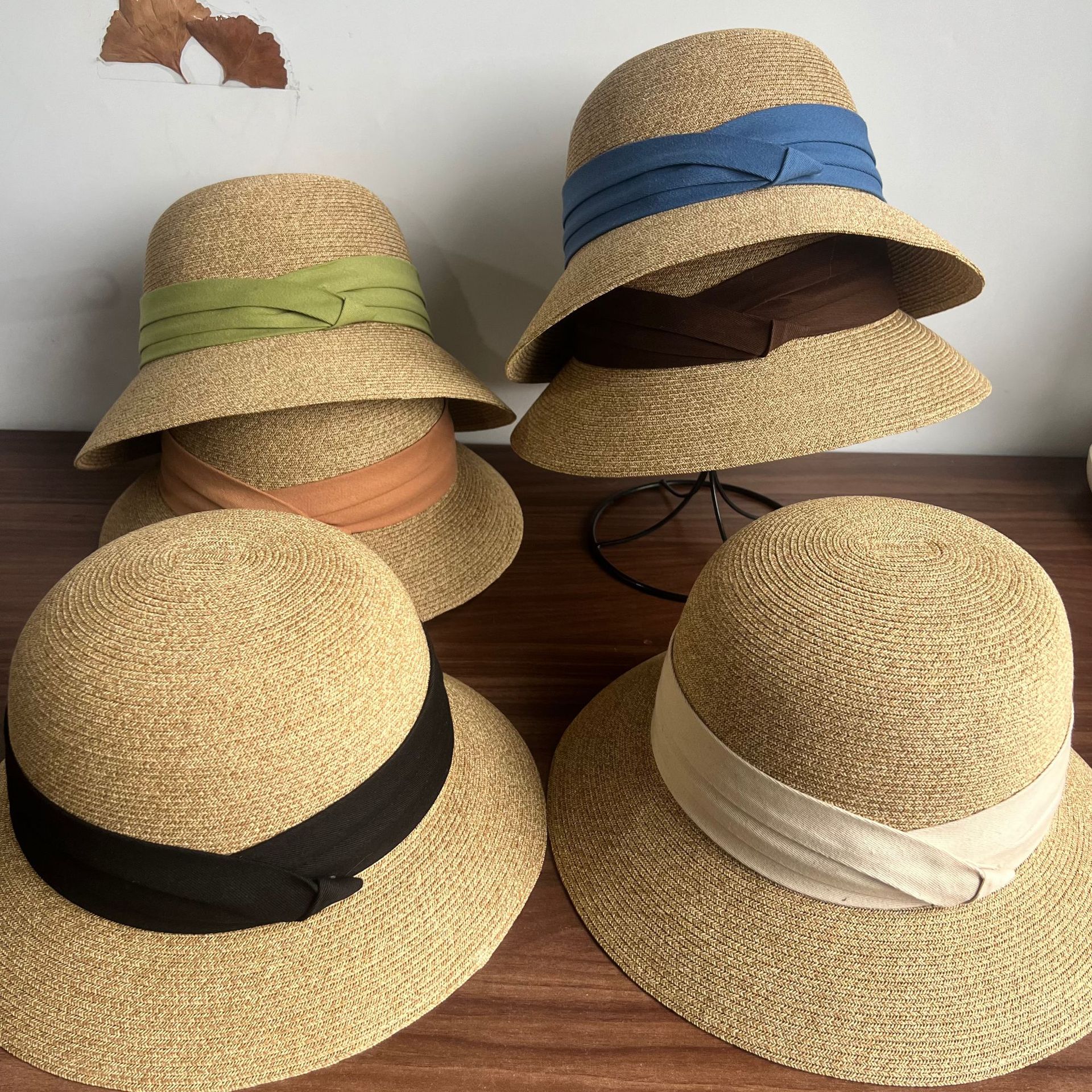 フランス式草編み日焼け止め蝶結び巻き雰囲気麦わら帽子女性夏日よけ帽子