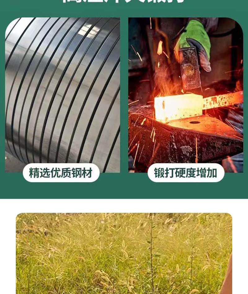 マンガン鋼鷹の口は柴刀を切ります。一体鍛圧農業用鎌は木を切ります。