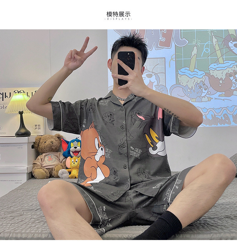 2025 新しいパジャマメンズ夏のティーンエイジャー学生半袖薄い夏メンズ大きいサイズホームウェアセット