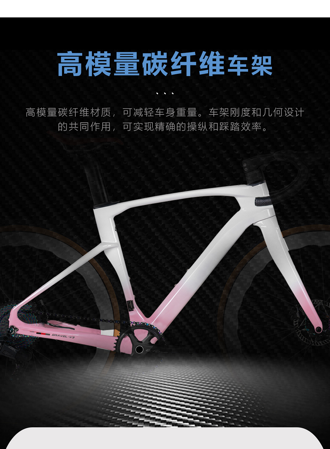 【车架】:Gravel V3(碟刹桶轴12*142) 高模量碳纤维/越野级/内走线