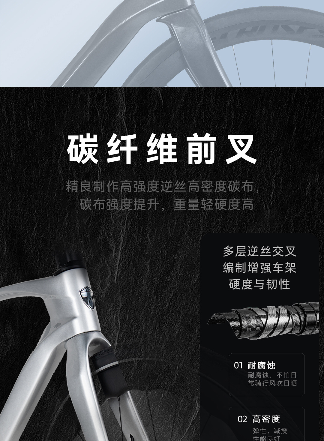 【前叉】:高模量碳纤维/公路硬叉