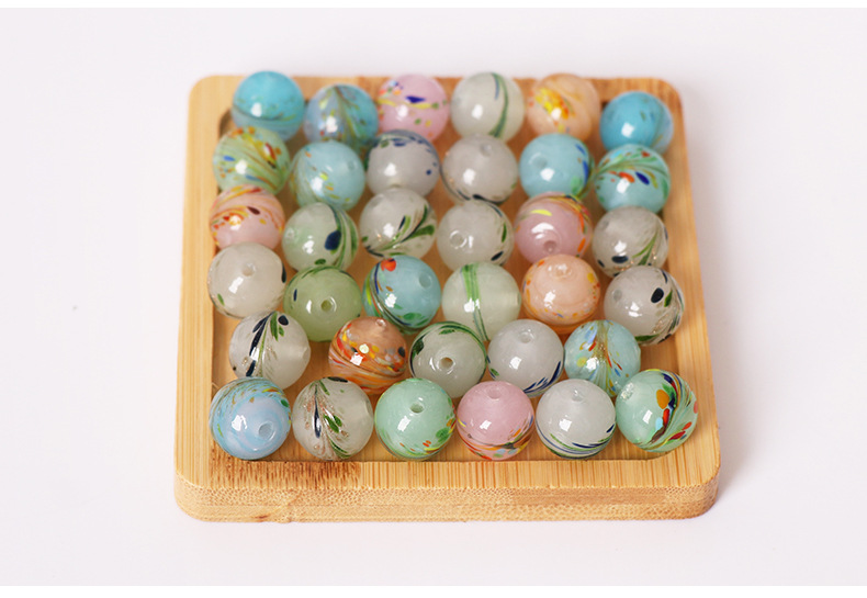 金沙発光ガラスビーズ手作りジュエリーアクセサリー DIY 透明ラウンドビーズブレスレット穴あき発光ビーズ素材