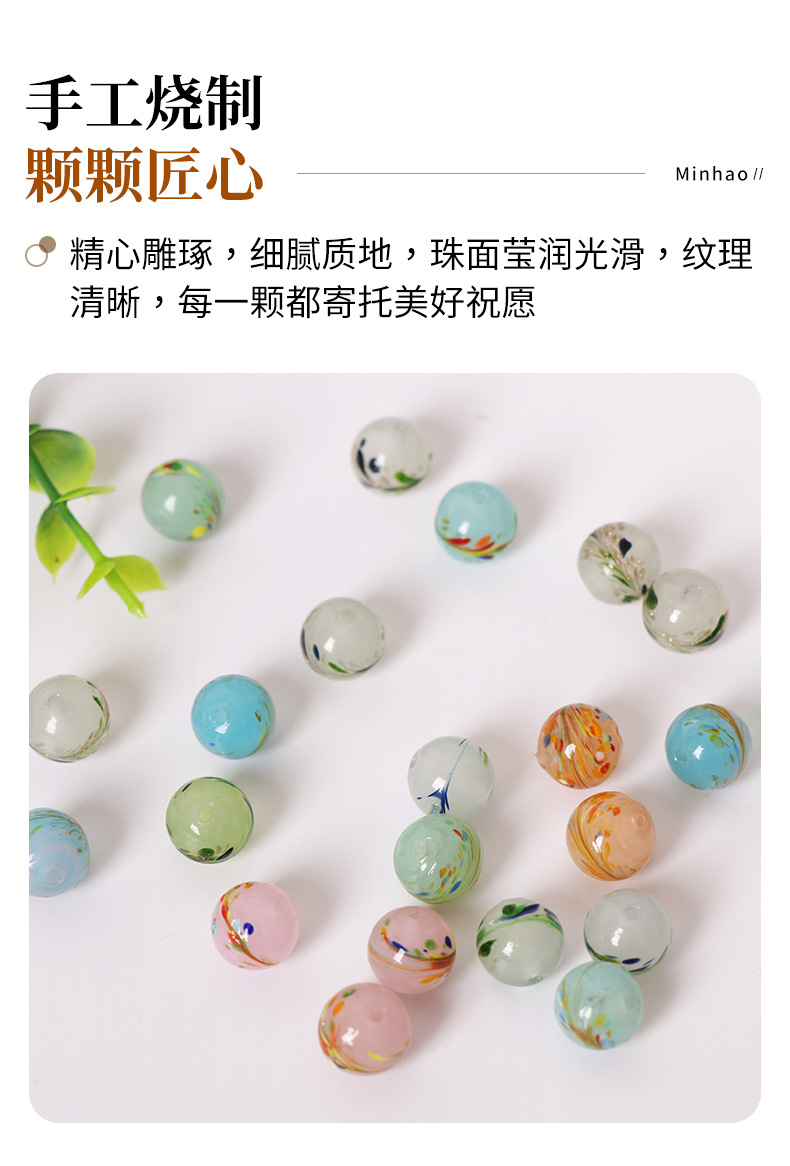 カラー銀箔愛瑠璃珠レトロかわいい手描き瑠璃珠手作りイヤリングDIYアクセサリーアクセサリー