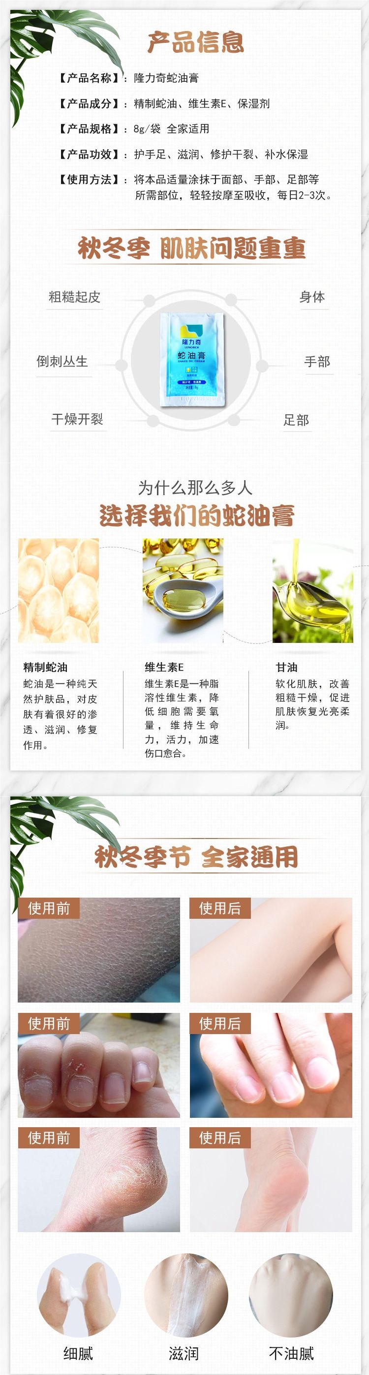Longliqi ヘビ油マッサージクリーム手と足保湿袋入りヘビ油マッサージクリームフットボディマッサージクリーム卸売