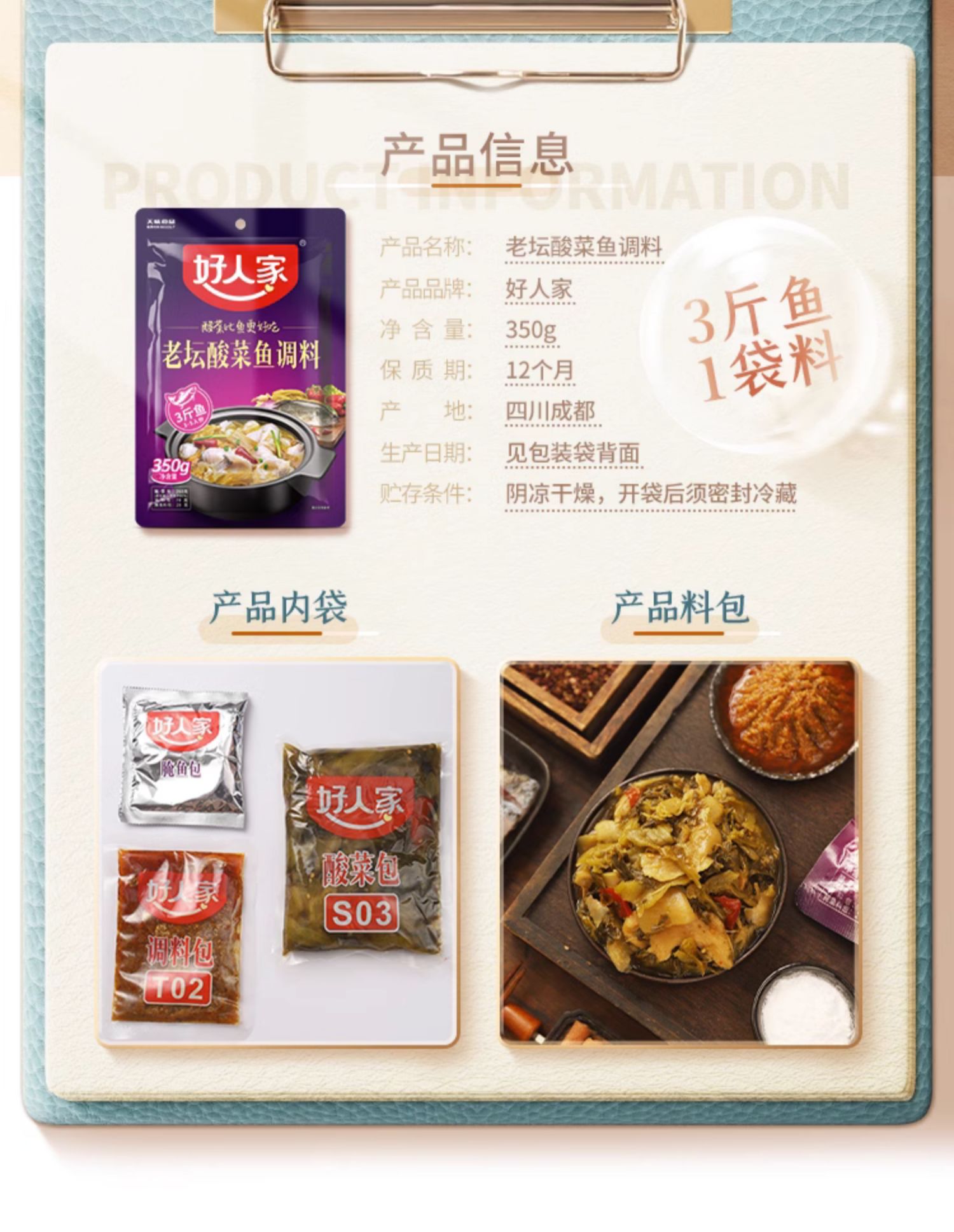 好人家老坛酸菜鱼调料包220g/350水煮鱼料理包酸汤鱼家用调批发