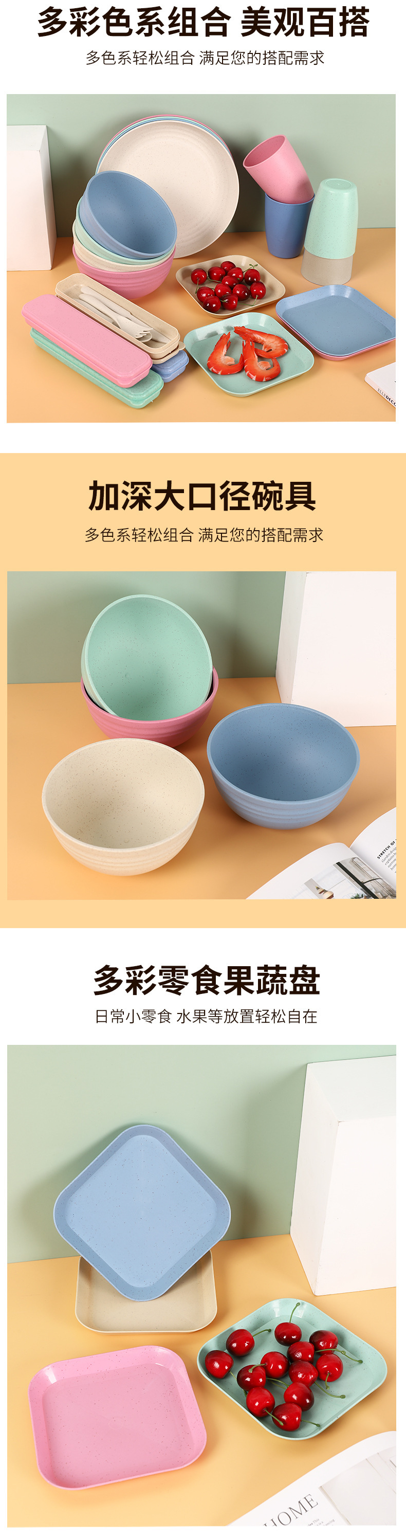 Temu 越境人気小麦わらプレート、ボウル、カップ 16 点セット家庭用落下防止食器、ボウル、カップギフトボックスセット