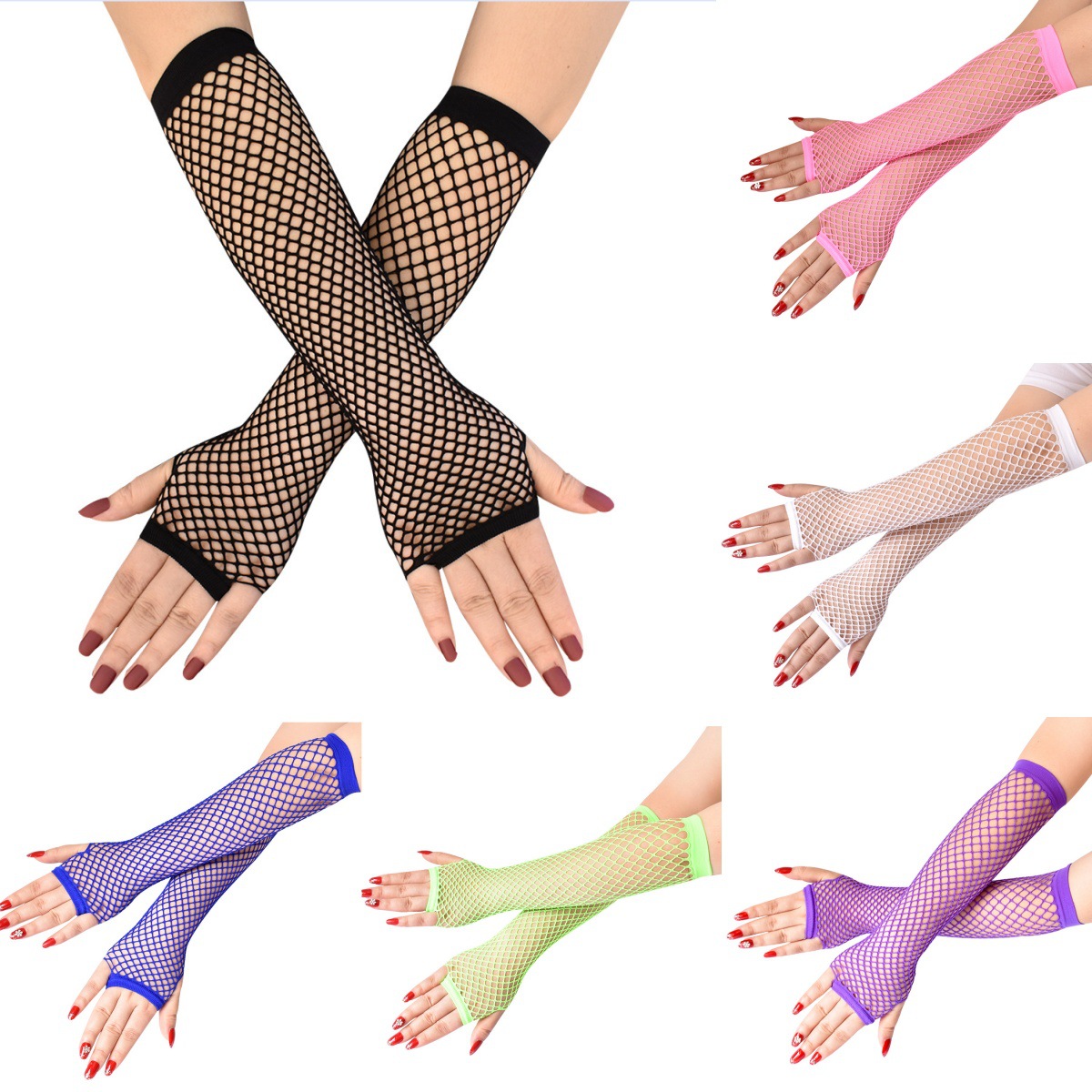 80s中長漁網弾力手袋細網セクシーメッシュ手袋レトロ越境パーティー舞踏会手袋
