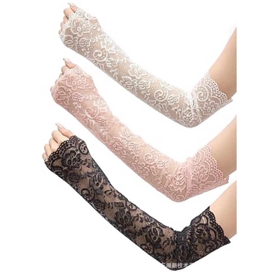 女性用夏用アイスレース日焼け止めスリーブ、運転やサイクリング用の長いクールなサンシェードグローブ、UV保護アームスリーブ