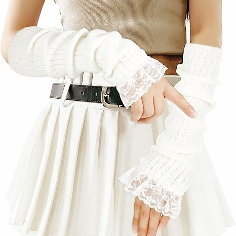 ニットホットガールスリーブ女性の秋と冬甘くてクールな Y2K カレッジスタイルアームスリーブロリータレース日本製フェイクスリーブ