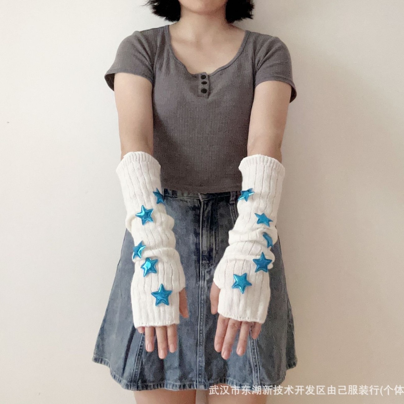 10 スターグローブ Y2K 女性カレッジスタイル指なし秋冬ニットパイルスリーブ日本原宿スタイル暖かい