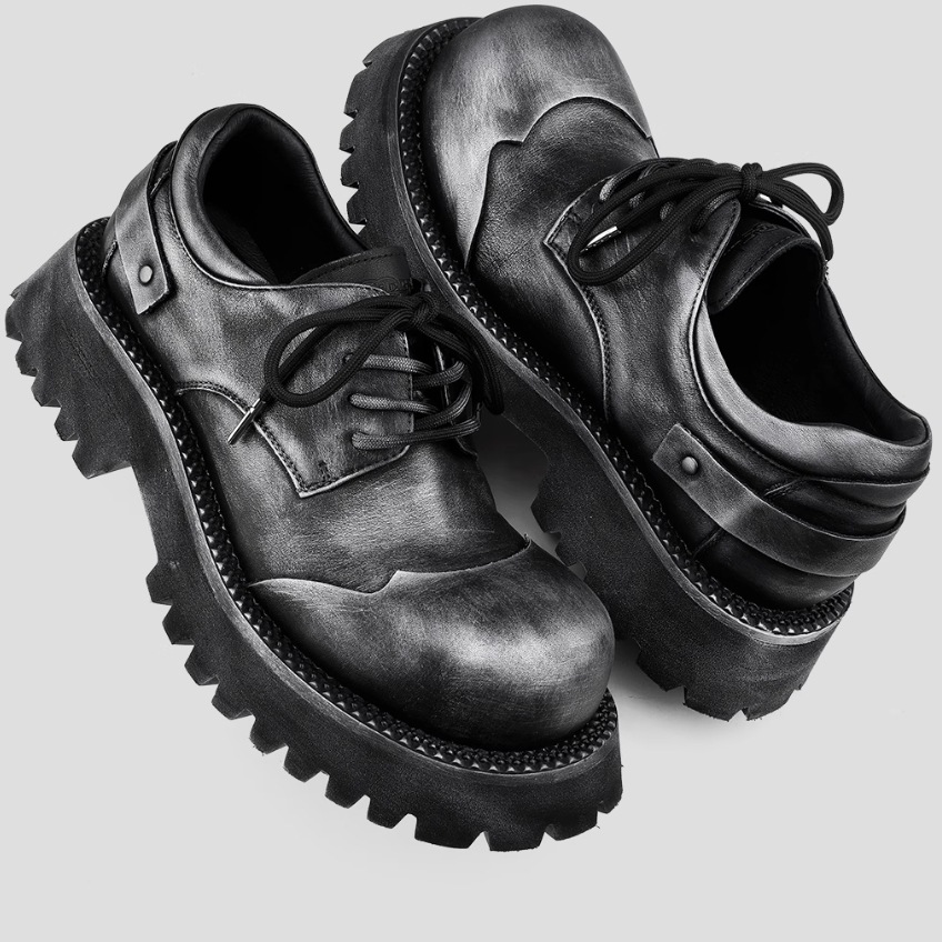 靴メンズトレンディシューズ 2025 牛革新クリーンフィット厚底ダービーシューズメンズバイブ高さ増加カジュアル革靴メンズ