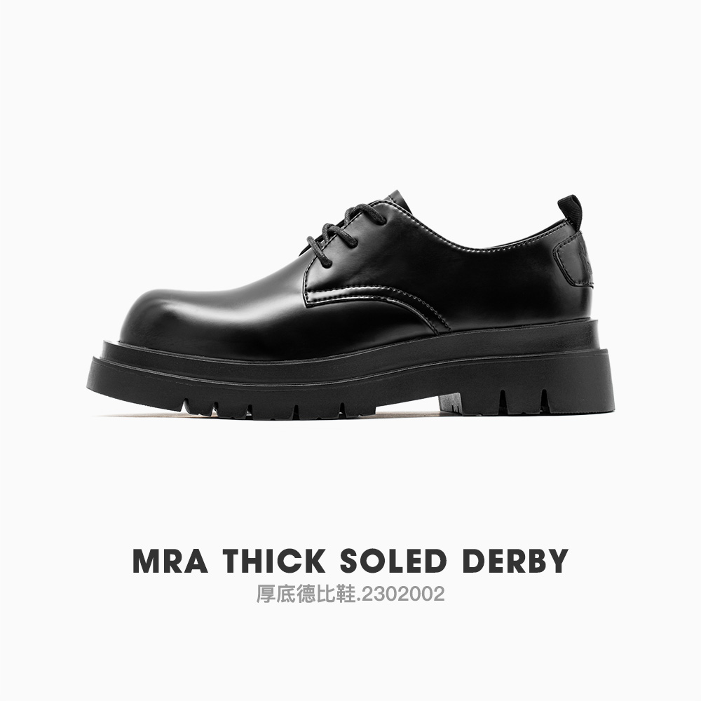 無地のクラシックダービーシューズ メンズ パリ風ミッキー ラージトゥ イギリス風カジュアルレザーシューズ 厚底 ハイカット ブラック マット仕上げ 多用途