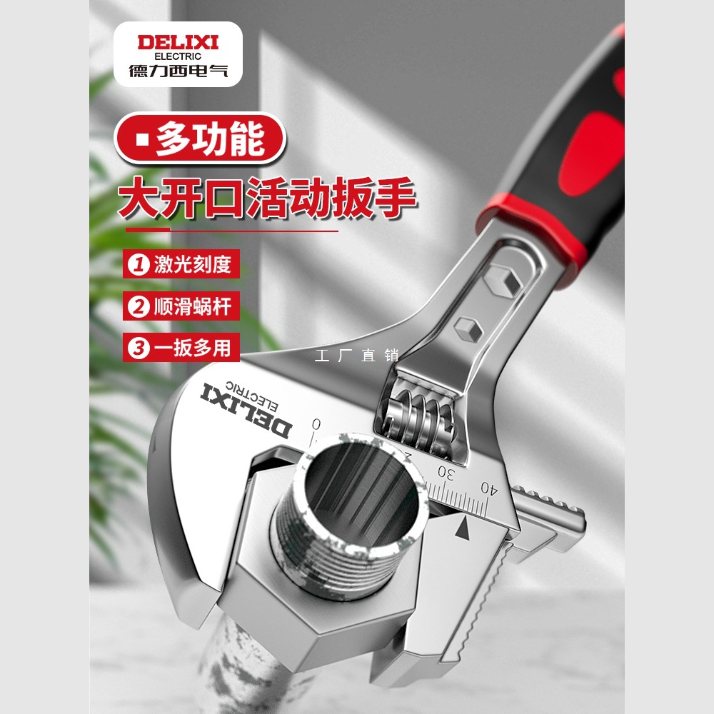 德力西电气多功能活动扳手万用活口卫浴小扳手水管水暖大开口板手