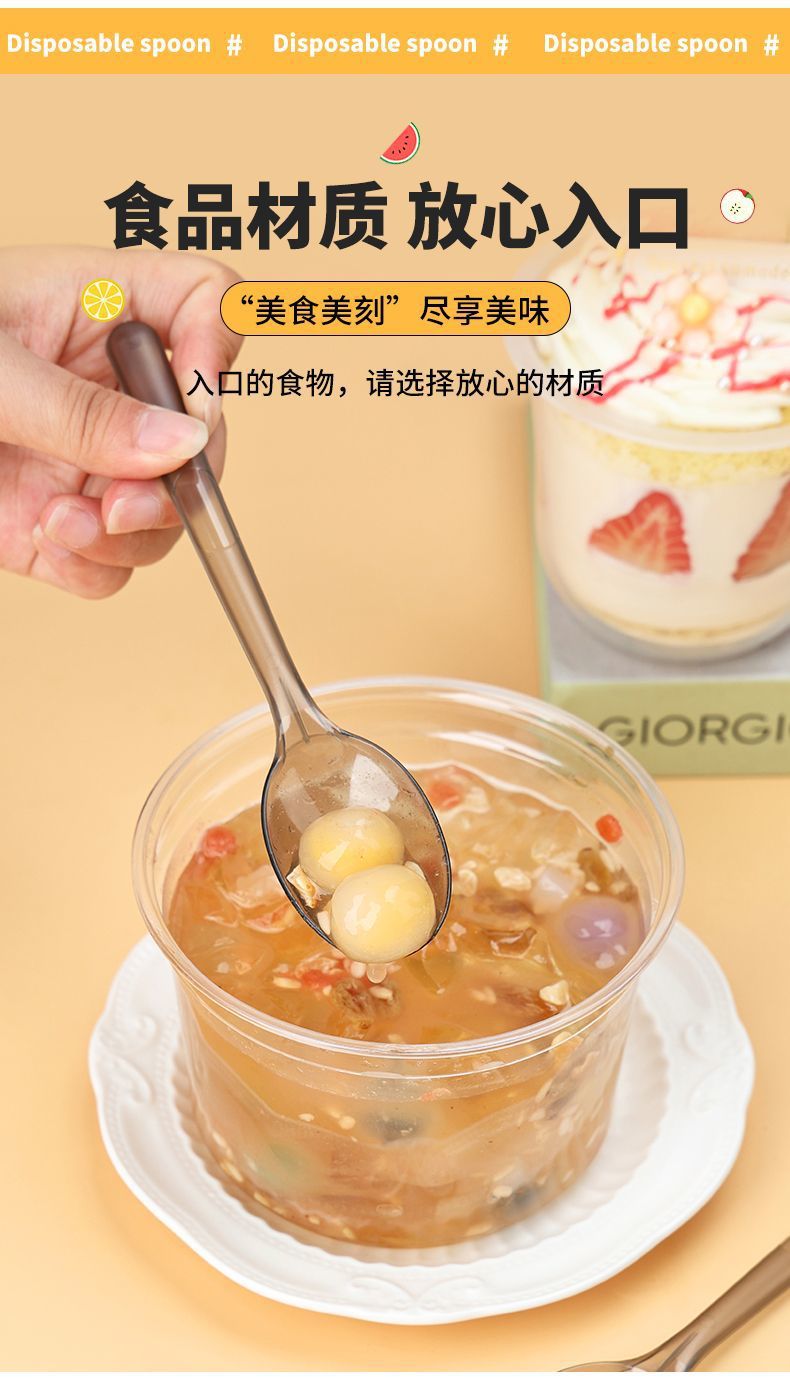 【ハイエンド】使い捨てスプーンを厚くして、販売用プラスチックを長くして、アイスパウダーのデザートを包装します。