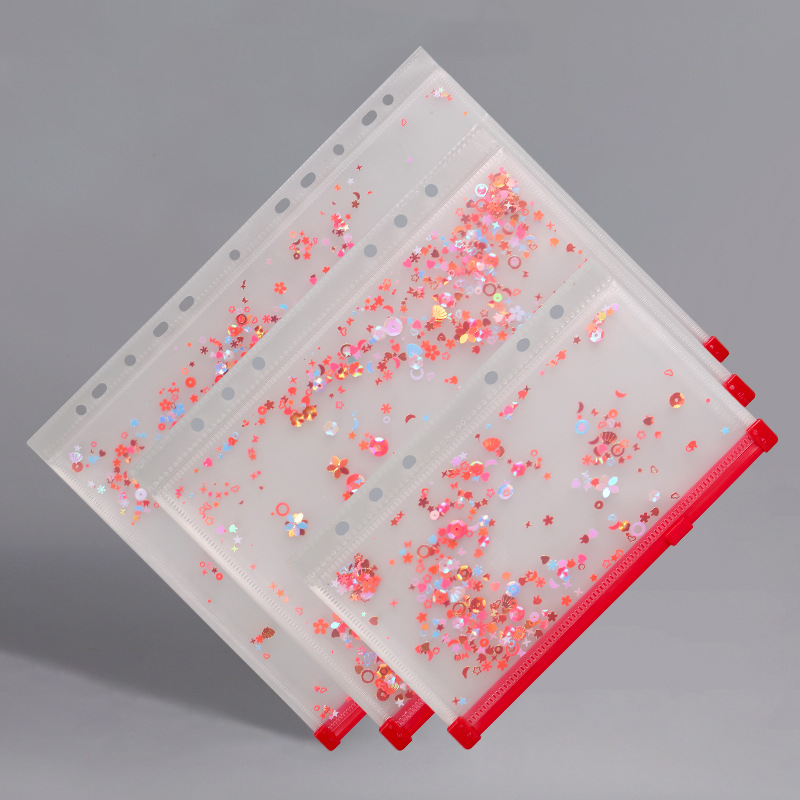 亮片透明带孔拉链活页袋a4a5a6防水磨砂文件袋环保插页分隔文件袋