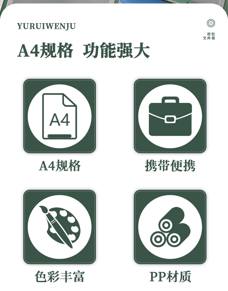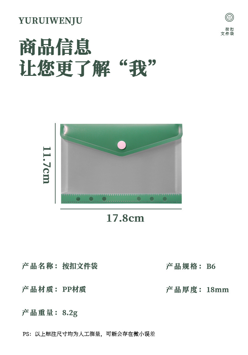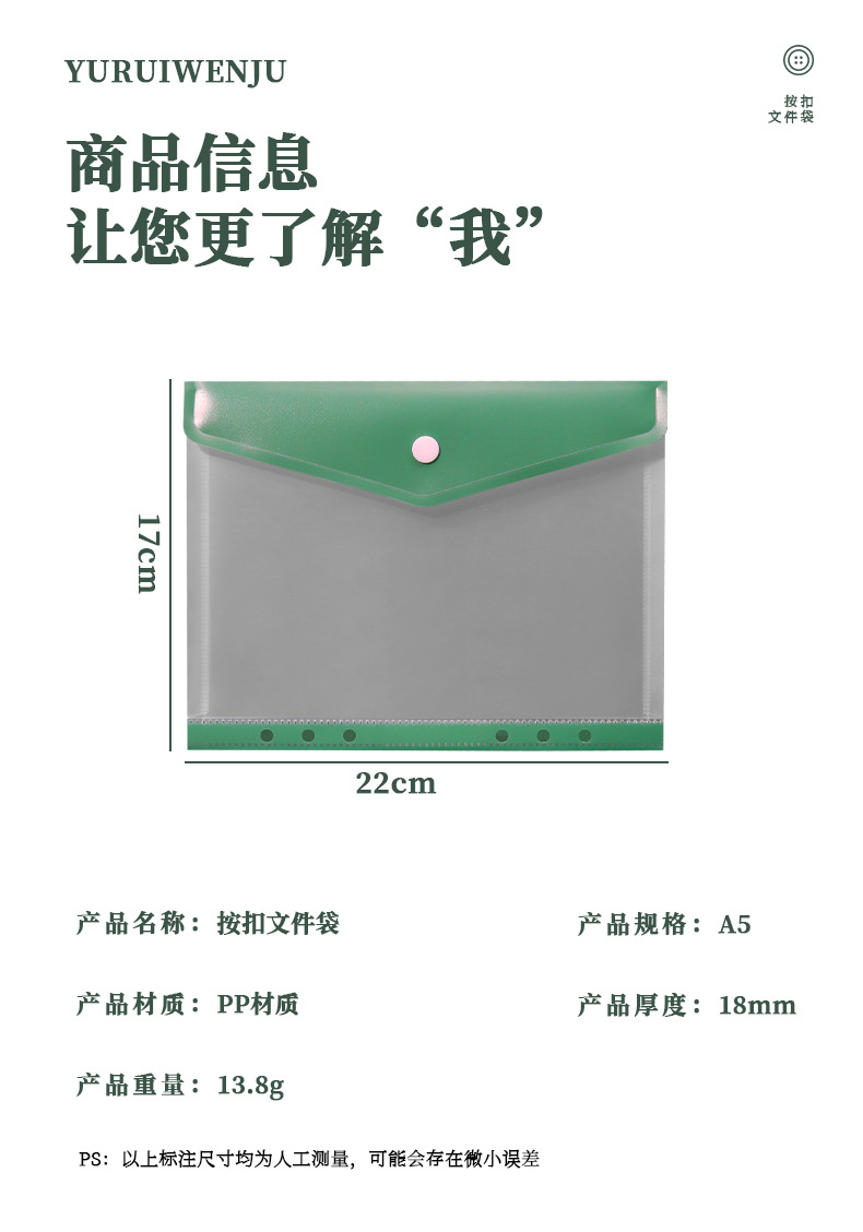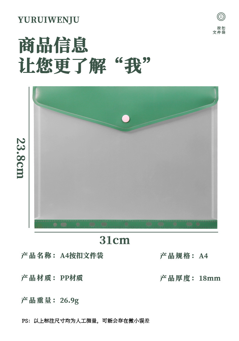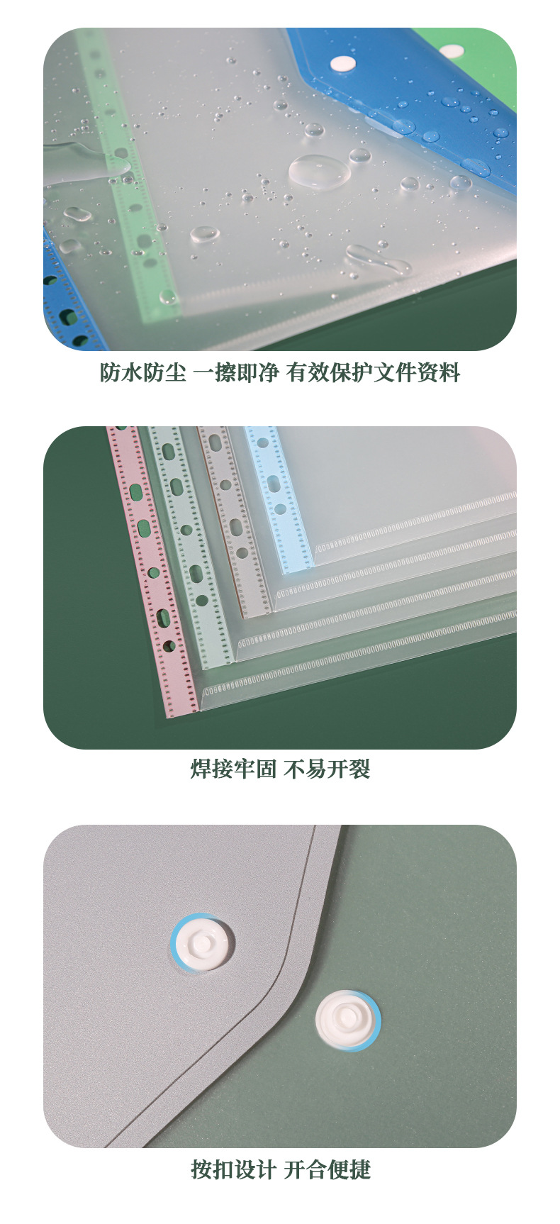 跨境A4透明按扣式塑料收纳袋资料档案PP标签名片文件袋办公档案袋