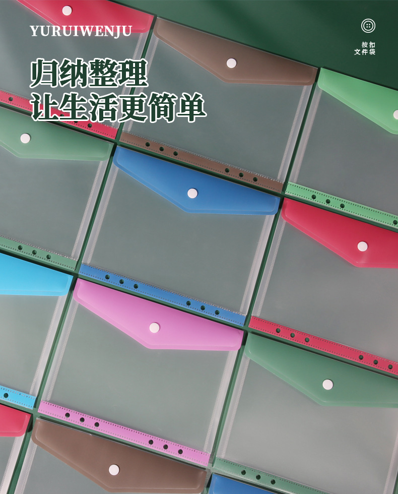 18丝马卡龙色按扣文件袋名片A4塑料办公档案收纳袋资料学生文具袋