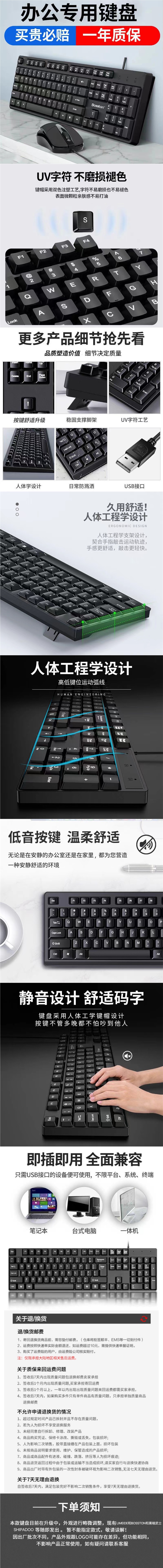 無線キーボードマウスセットUSBパソコンデスクトップノートパソコンオフィス静音機械手触り有線キーボード