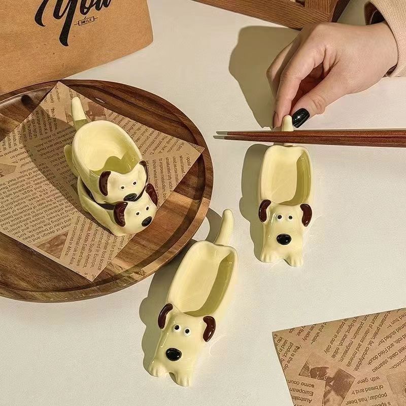 Ins風新型アニメ番手犬陶磁器ソース調味料皿創意箸ホルダー多機能家庭用