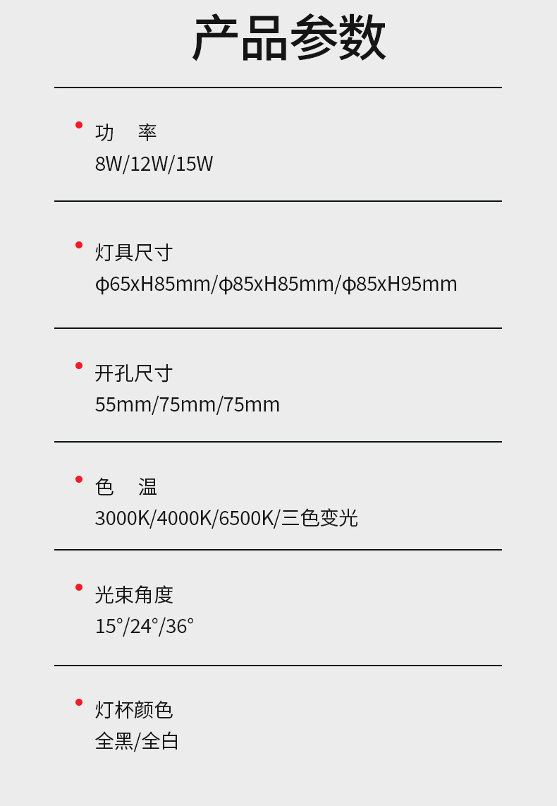 パワー ホワイト 8W 開口部 75MM,ホワイト 10W 開口部 75MM,ホワイト 12W 開口部 75MM,ブラック 8W 開口部 75MM,ブラック 10W 開口部 75MM,ブラック 12W 開口部 75MM