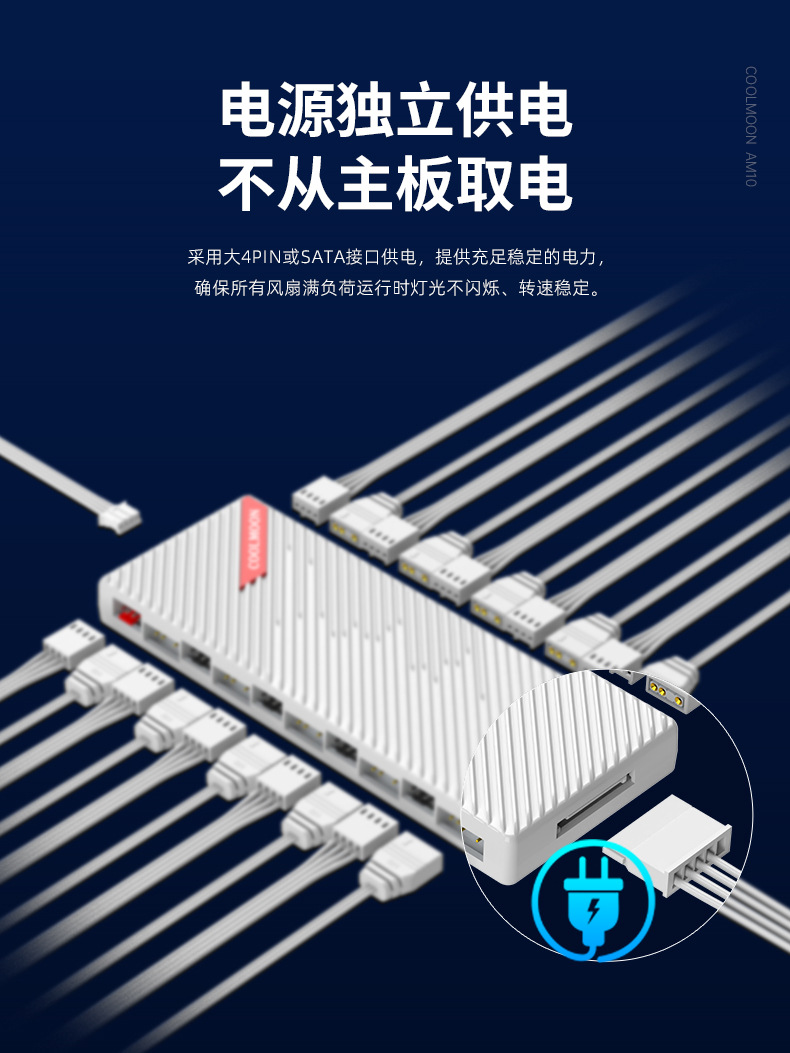 Cool Moon コンピュータ 5v3 ピン 1/10 SATA 電源 4pin ファン ARGB + PWM デュアル 10 ポートファンハブ