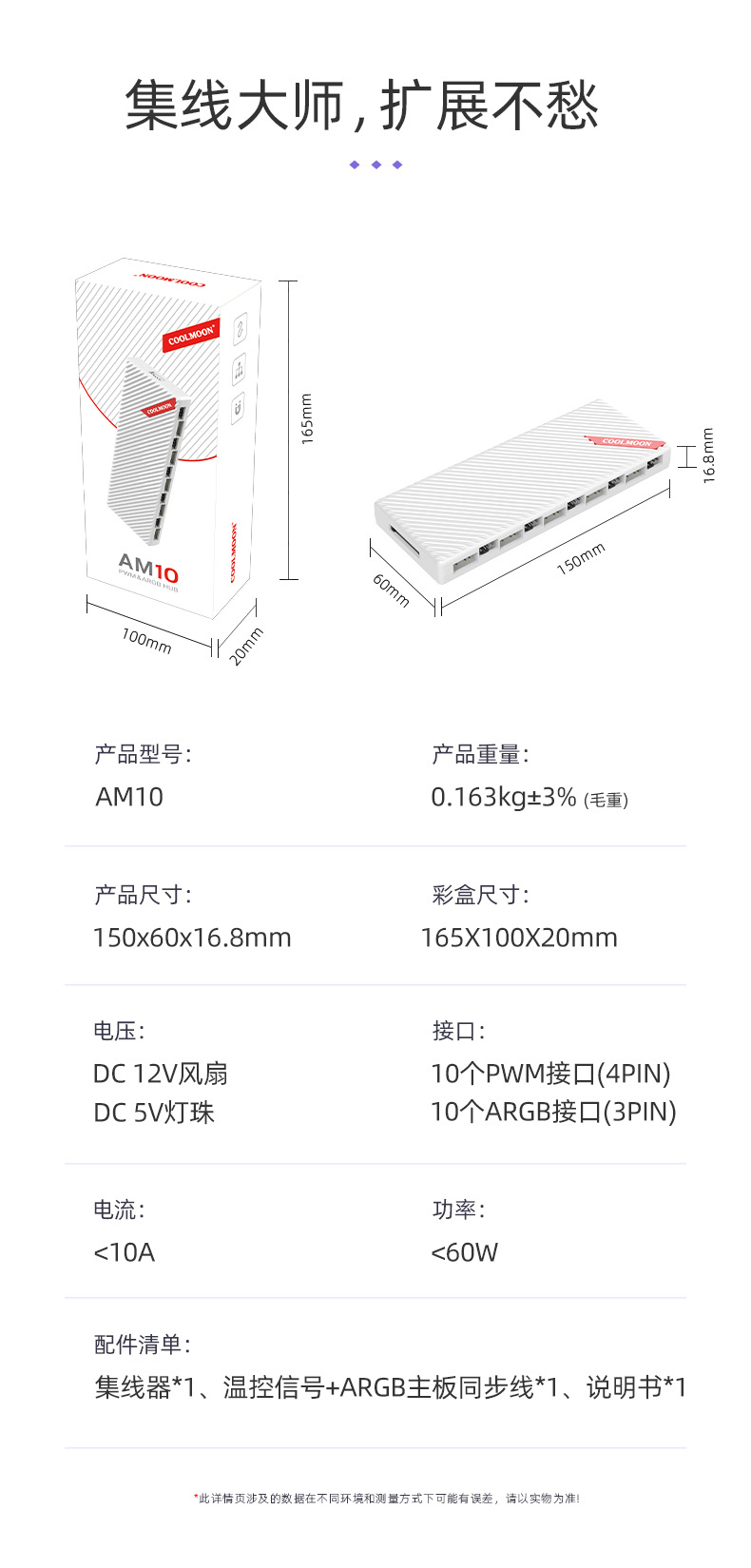 クールムーンファンARGBハブコンピュータ温度制御5V3ピン一分十拡張延長PWMハブ