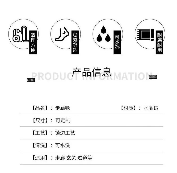 跨境可裁剪家用客厅走廊地毯过道玄关家用水洗满铺入户地毯卷材