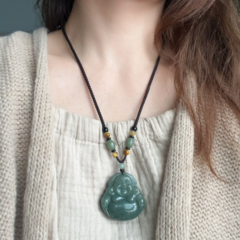 天然和田玉大佛吊坠女玉佛湖水绿笑佛玉佩石佛公项链毛衣链玉坠
