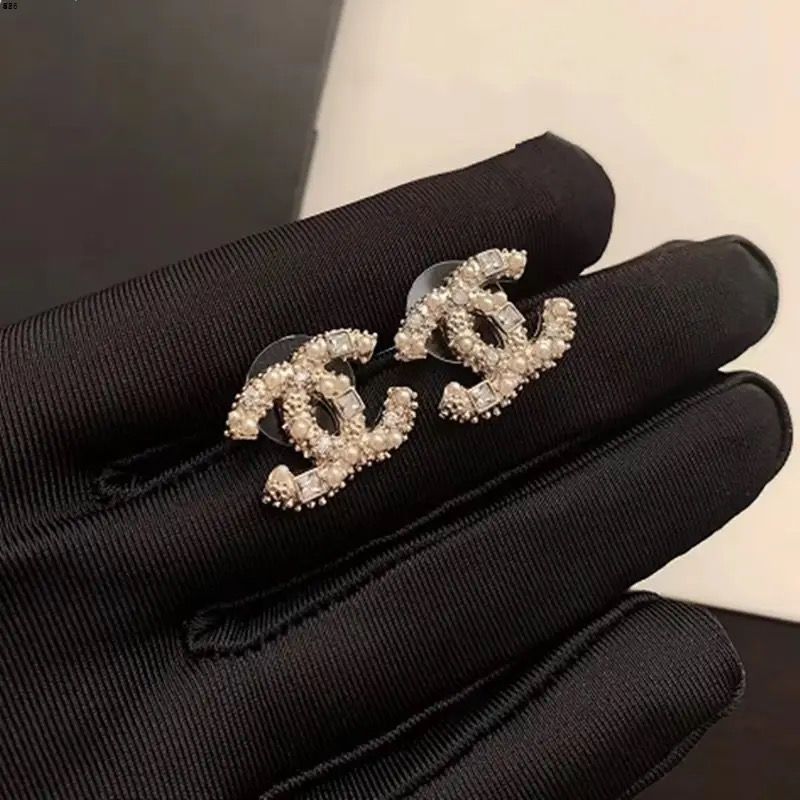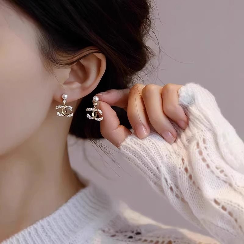 小香风 高版本新款 经典复古港风气质字母耳钉不锈钢田园风