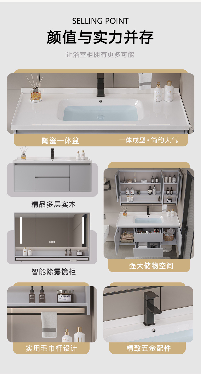 バスルームセラミック洗面一体型洗面器組み合わせモダンシンプル壁掛け洗面器スマートバスルームキャビネット