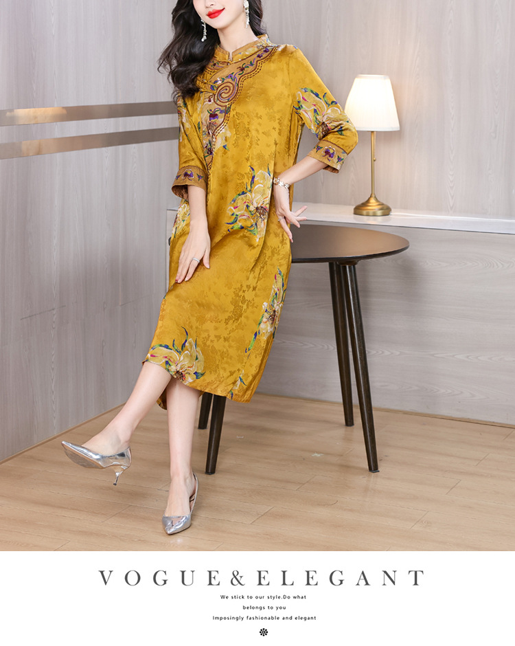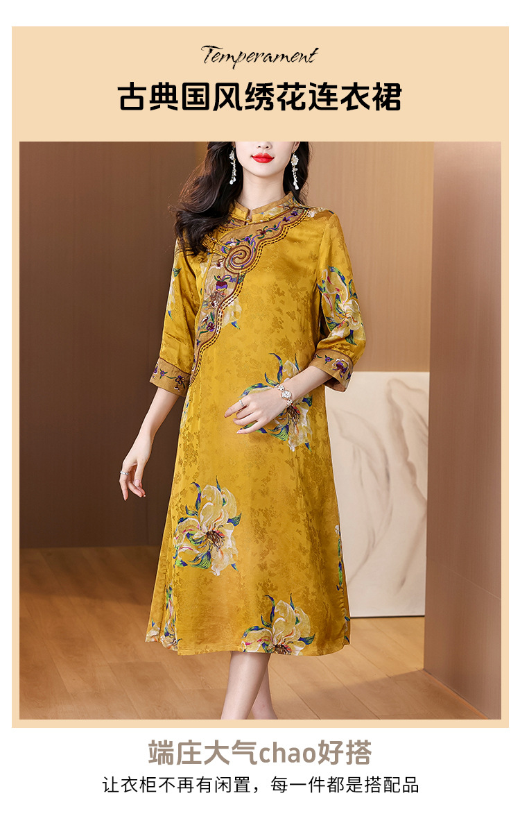Mmc1016国風ジャカード文芸茶服2025夏の新型改良斜襟刺繍新中国式ワンピース