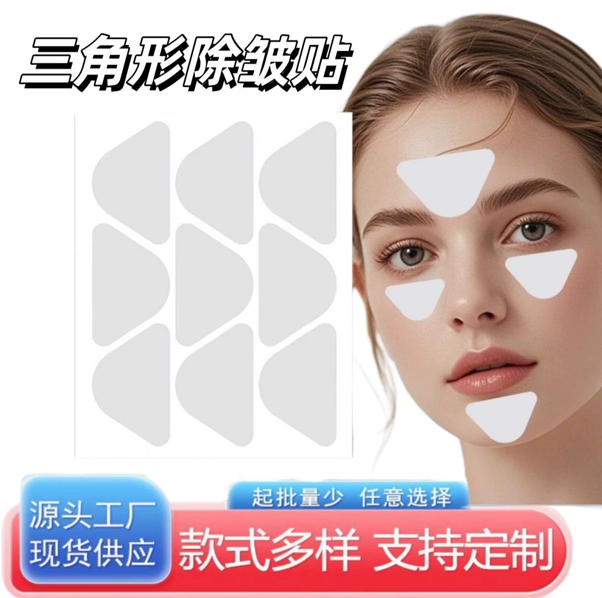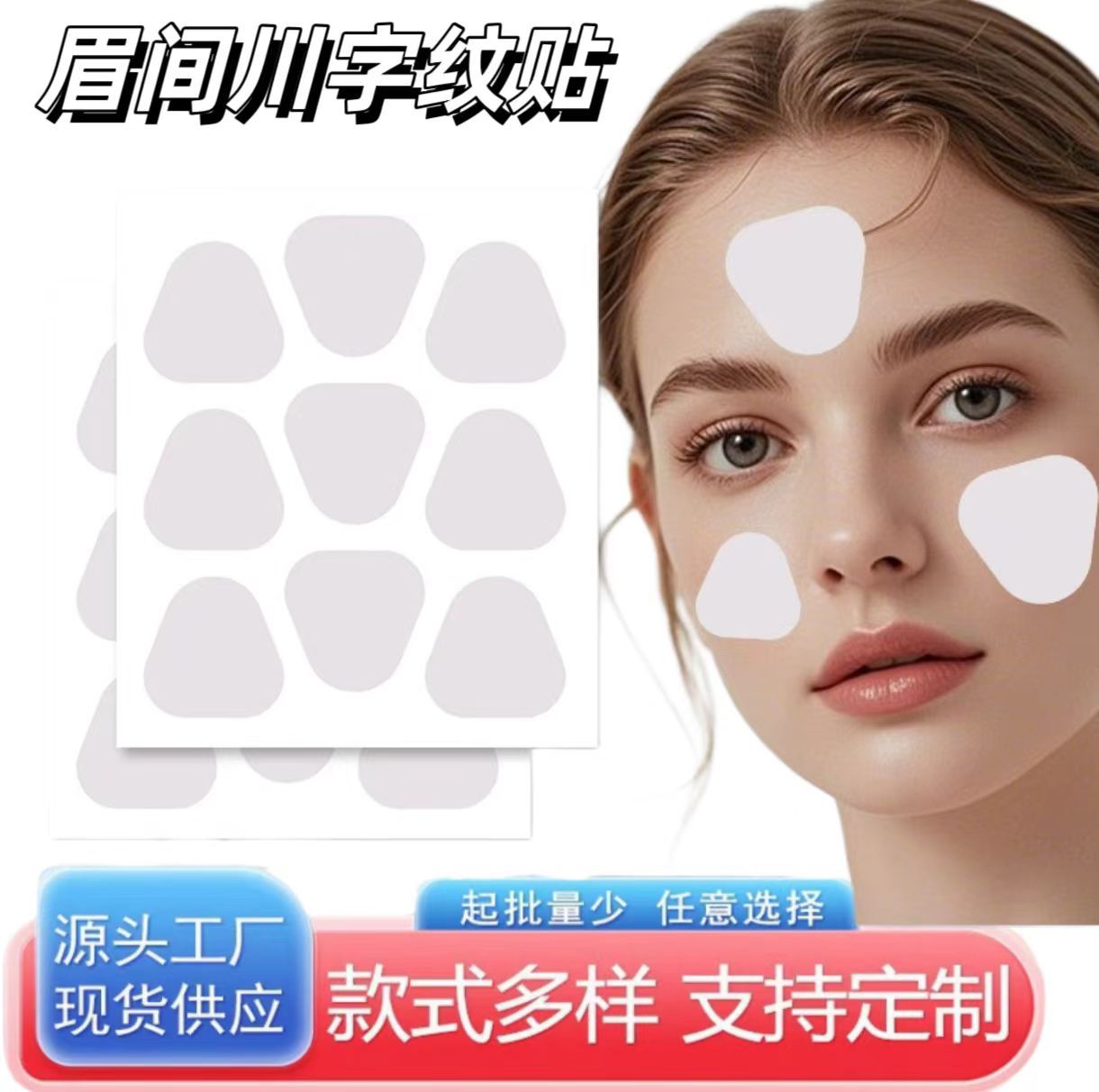 眉间皱纹贴额头贴三角形抗皱贴川字纹贴美容贴淡化眼角细纹跨境