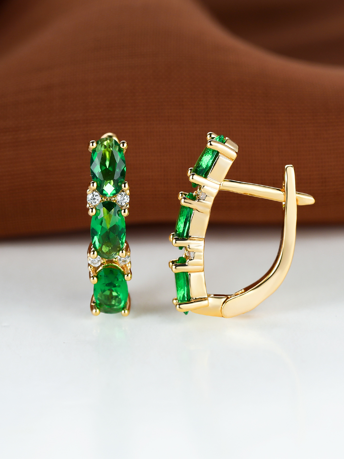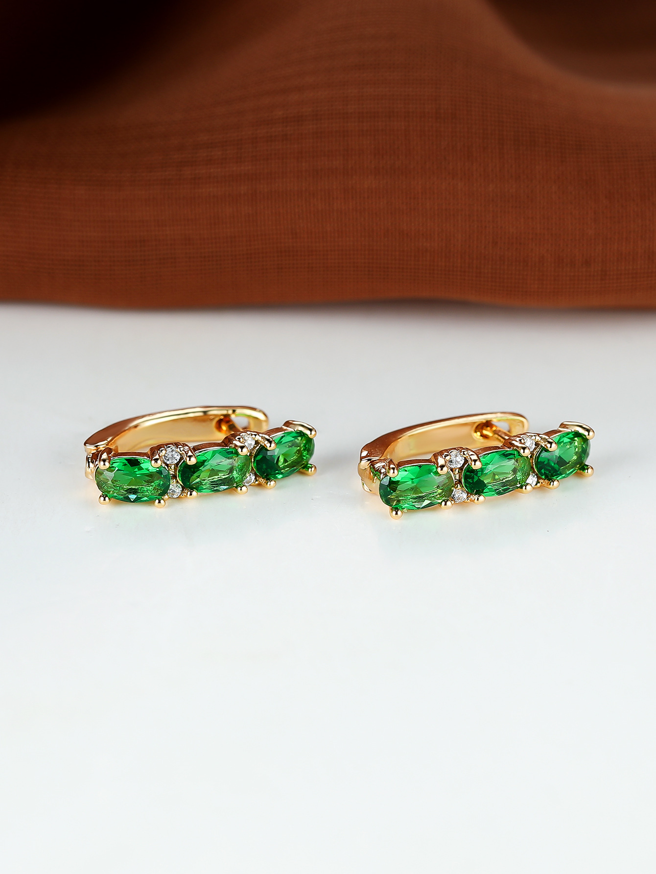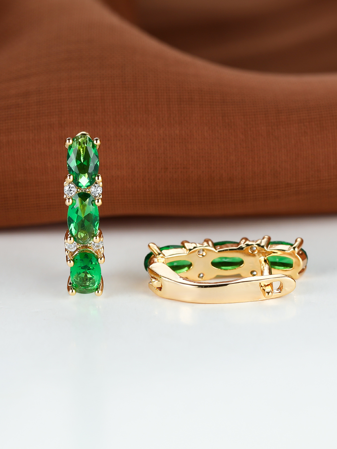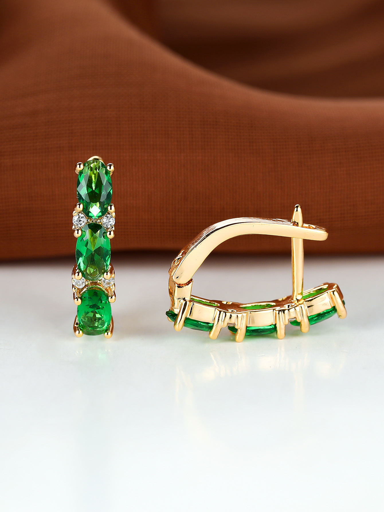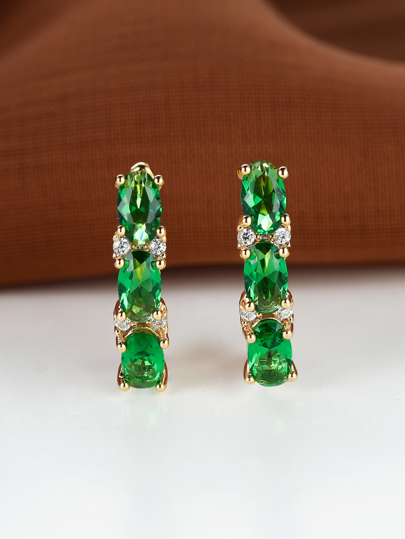 パタヤ先祖母緑高級感イヤリング585バラ金メッキシンプルファッションジルコンイヤリングクロスボーダー直供