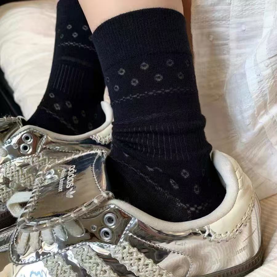 レトロミッドカーフソックス レディース 和風 イギリス風 カーキ 小さな菱形模様のパイルソックス トレンドソックス 英国風 和風