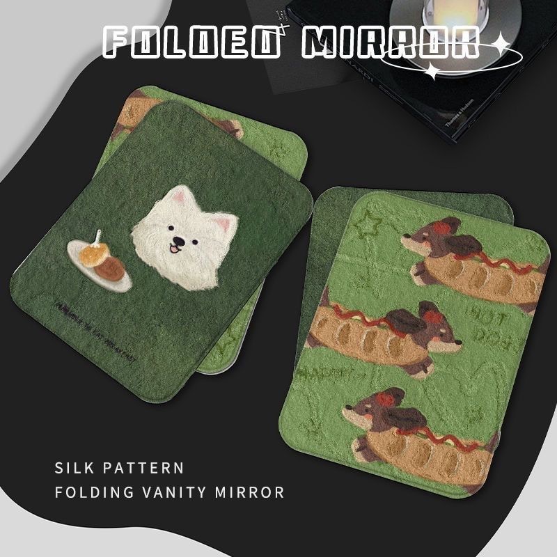 新款镜子可爱小狗加厚防摔旅行外出随身便携化妆镜高清家用梳妆镜