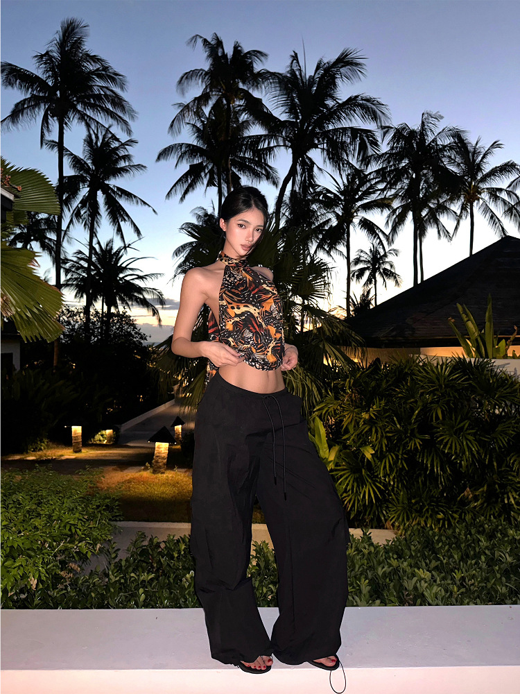 2025千年風ギャルのタイ式の首のサスペンダーのベストの女性の夏の背中のノースリーブのタイトな短い上着の外着