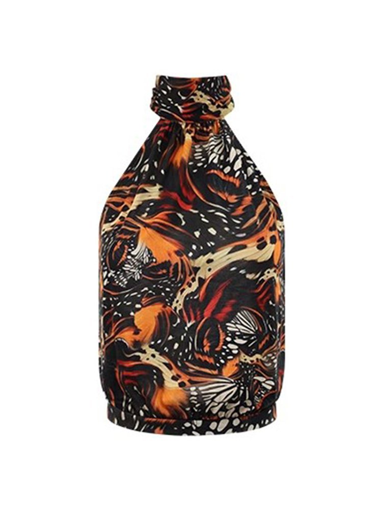 上着のギャルのサスペンダーのベストの女性の修身のリボンは首の短い金の蝶の復古の露背の春夏の項のプリントのバンドを掛けます。