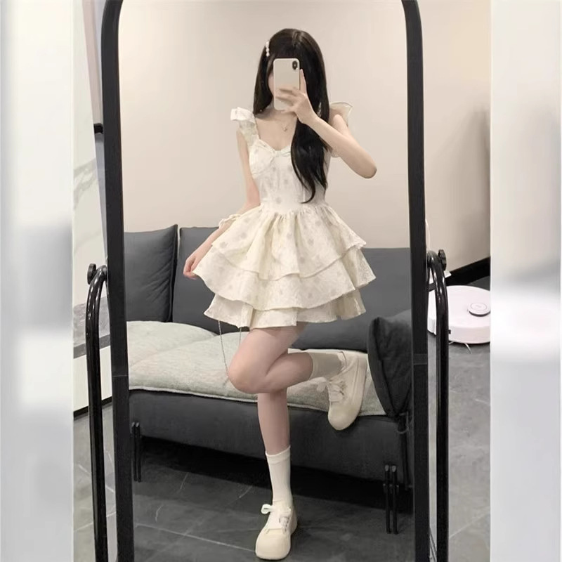 誕生日ドレス、高級フレンチスタイルのリッチガールドレス、ベストドレス、ウエストドットサスペンダードレス、レディースサマー
